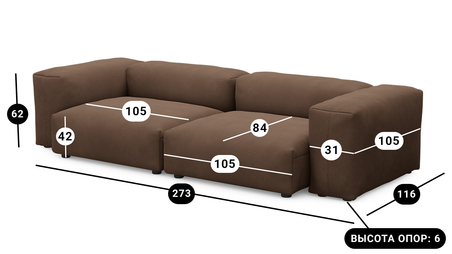 Мебель напрямую от фабрики. Можем менять габариты, цвет, варианты обивки и фасадов. Диван Фиджи двухсекционный (большой) отличается высоким качеством материалов и сборки, что гарантирует долговечность и надежность. Современный дизайн гармонично впишется в любой интерьер, а продуманная эргономика обеспечит максимальный комфорт. Преимущества дивана Фиджи двухсекционного (большого) Высокое качество и долговечность Современный и стильный дизайн Продуманная эргономика для максимального комфорта Простота в уходе и обслуживании Диван Фиджи двухсекционный (большой) - идеальное решение для тех, кто ценит качество, комфорт и красоту. Весь ассортимент мебели от фабрики производится по самым высоким стандартам с использованием передовых технологий. Мы гарантируем безупречное качество каждого изделия и полное соответствие всем необходимым нормам и требованиям. Жизнь не стоит на месте: все меняется, мы растем, а иногда просто чувствуем, что пришло время снова что-то менять. Наши диванные модули разработаны таким образом, чтобы Вы могли легко дополнять или изменять расположение или заново создавать свой образ (за счет соединителей, которые приобретаются дополнительно). Модульные транформеры Фиджи позволят Вам создать уникальный предмет мебели, отражающий Вашу индивидуальность и стиль жизни. Смешивайте и подбирайте ткани и размеры, а также добавляйте дополнительные модули, чтобы создать свой фирменный диван. Кушетка, на которой можно свернуться калачиком и почитать книгу, диван, на котором можно вздремнуть или большой гостиный гарнитур для всей семьи - наши диванные модули мгновенно позволят Вам почувствовать комфорт. Характеристики дивана Фиджи двухсекционный (большой) Функциональность Диван для отдыха Исполнение Комплектация: 2 пуфа со спинкой 105*84 см, 2 подлокотника 105*31 см Обивочный материал: велюр Vektor Марал Vivaldi 23 Опоры: пластик; ППУ 3040 Механизм трансформации Трансформер Нераскладной Габариты (Ширина*Глубина*Высота) 273*116*62 см Гарантия: 18 месяцев Обновлено:15.10.2025