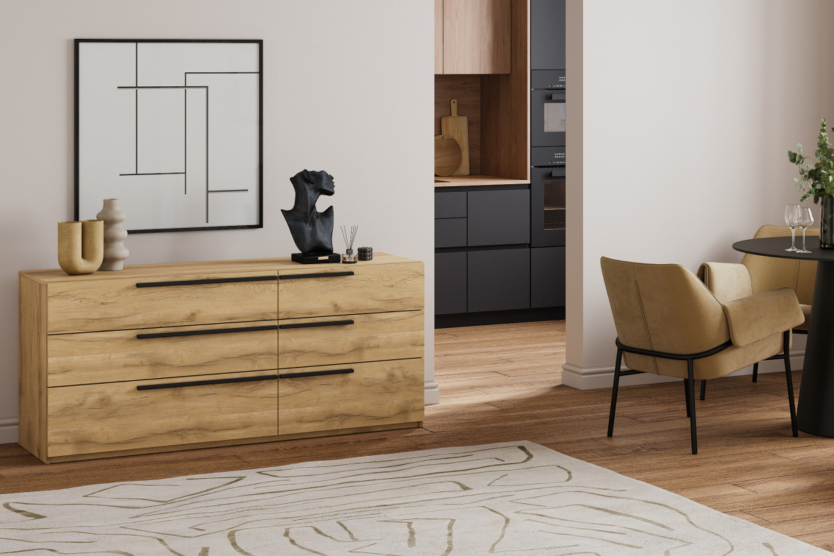 Мебель напрямую от фабрики. Можем менять габариты, цвет, варианты обивки и фасадов. Комод Лорена Пакс-3 отличается высоким качеством материалов и сборки, что гарантирует долговечность и надежность. Современный дизайн гармонично впишется в любой интерьер, а продуманная эргономика обеспечит максимальный комфорт. Преимущества комода Лорена Пакс-3 Высокое качество и долговечность Современный и стильный дизайн Продуманная эргономика для максимального комфорта Простота в уходе и обслуживании Комод Лорена Пакс-3 - идеальное решение для тех, кто ценит качество, комфорт и красоту. Весь ассортимент мебели от фабрики производится по самым высоким стандартам с использованием передовых технологий. Мы гарантируем безупречное качество каждого изделия и полное соответствие всем необходимым нормам и требованиям. Характеристики комода Лорена Пакс-3 Исполнение Материал фасадов: ЛДСП Дуб Золотистый U1148 Материал корпуса: ЛДСП Дуб Золотистый U1148 / Оргалит Габариты (Ширина*Глубина*Высота) 160*44*70 см Гарантия: 24 месяца Обновлено:15.10.2025