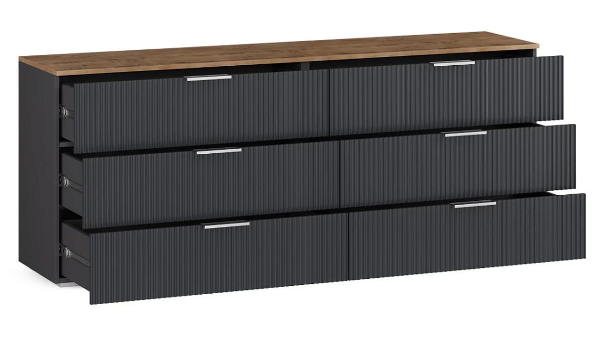 Мебель напрямую от фабрики. Можем менять габариты, цвет, варианты обивки и фасадов. Комод Салерно 6 (МДФ) отличается высоким качеством материалов и сборки, что гарантирует долговечность и надежность. Современный дизайн гармонично впишется в любой интерьер, а продуманная эргономика обеспечит максимальный комфорт. Преимущества комода Салерно 6 (МДФ) Высокое качество и долговечность Современный и стильный дизайн Продуманная эргономика для максимального комфорта Простота в уходе и обслуживании Комод Салерно 6 (МДФ) - идеальное решение для тех, кто ценит качество, комфорт и красоту. Весь ассортимент мебели от фабрики производится по самым высоким стандартам с использованием передовых технологий. Мы гарантируем безупречное качество каждого изделия и полное соответствие всем необходимым нормам и требованиям. Характеристики комода Салерно 6 (МДФ) Исполнение Материал фасадов: SF-019 Графит Материал корпуса: ЛДСП Серый графит 0162 РЕ / Дуб Золотистый U1148 / Оргалит Габариты (Ширина*Глубина*Высота) 182*42*72 см Гарантия: 24 месяца Обновлено:15.10.2025