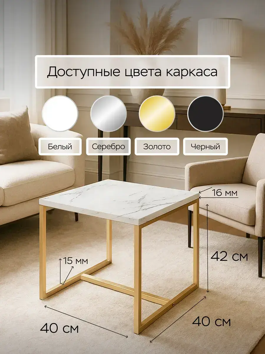 Современный куб-стол с надежным каркасом из металла станет идеальным решением для квартиры, кабинета и загородного дома. Минималистичный дизайн гармонично впишется в любое пространство — от гостиной до рабочего места, от спальни до веранды. Небольшие габариты и надежная конструкция делают изделие многофункциональным: подойдет как журнальный, так и прикроватный вариант, а также как подставка для растений, компьютера или аксессуаров. Прочный металлический каркас обеспечивает долговечность и надежность на долгие годы. Поверхность устойчива к царапинам и легко очищается от загрязнений. Быстрая сборка займет всего 10 минут благодаря понятной схеме — достаточно закрепить верхнюю часть 4 саморезами и соединить каркас 2 винтами. Универсальность предмета дает возможность применения в квартире, творческом пространстве, на загородном участке, в кафе, образовательных и коммерческих помещениях. Благодаря небольшим габаритам мебель легко перемещается по дому и быстро находит применение в любой обстановке. Стол отлично подойдет как журнальный в гостиной или релакс-зоне для размещения чашек, книг и журналов. В спальне он станет удобной прикроватной тумбой для лампы, телефона и личных вещей. Мебель можно применять как подставку для растений, создавая уютные зеленые уголки в интерьере. Компьютер, принтер или другие устройства найдут свое применение на устойчивой поверхности. В рабочих помещениях куб станет практичным решением для переговорных и холлов ожидания. Кафе и рестораны оценят его как стильный кофейный вариант для посетителей. На веранде или в саду мебель создаст комфортную атмосферу для отдыха и чаепития. Образовательные учреждения смогут применять изделие как дополнительный стол для занятий и творчества. Куб-стол сочетает в себе стиль, функциональность и долговечность, становясь незаменимым помощником в организации любого пространства