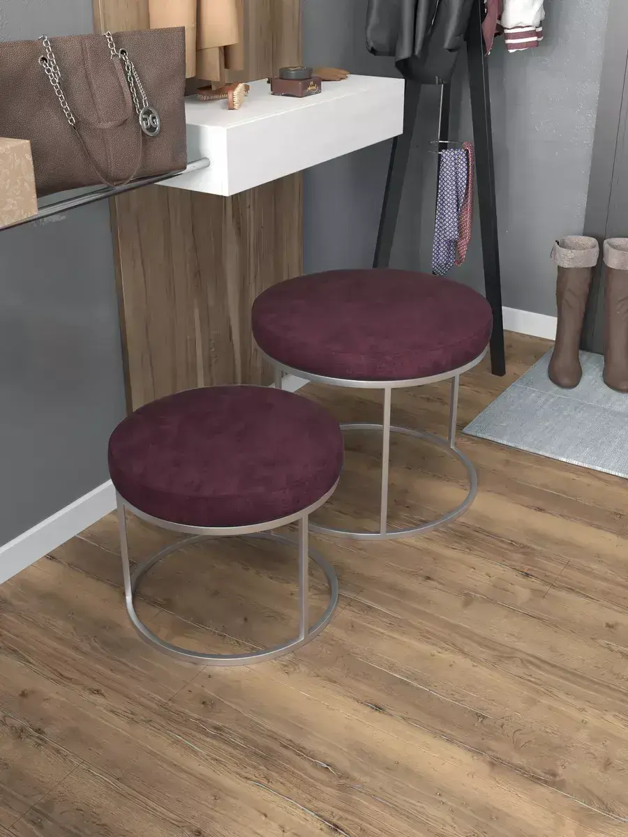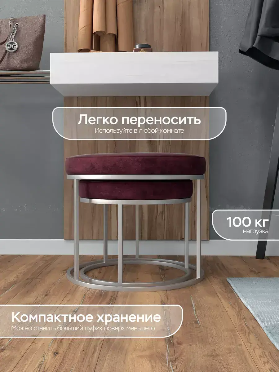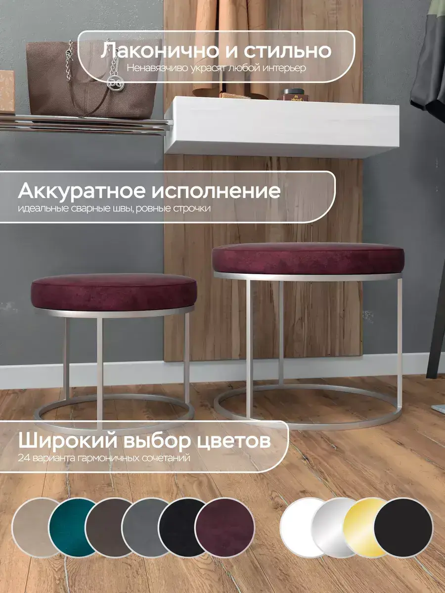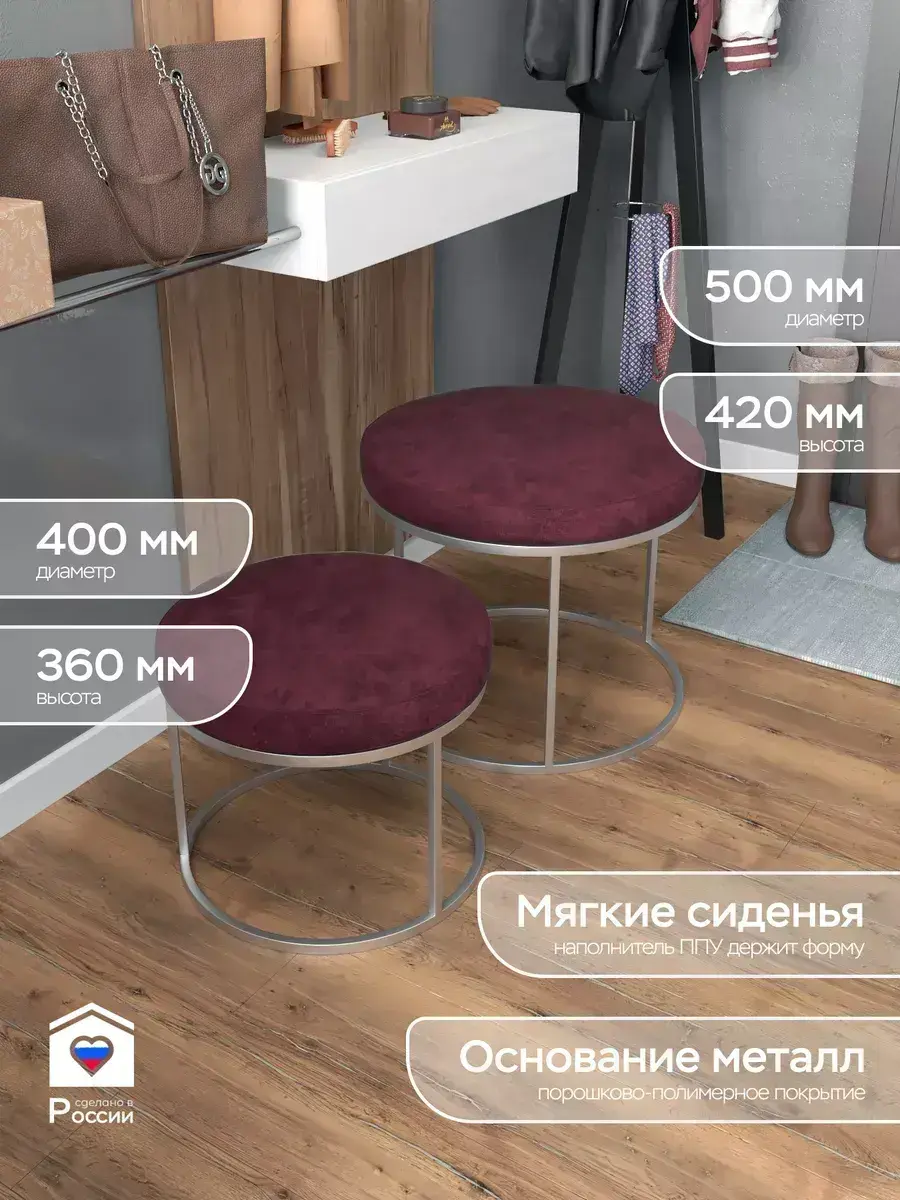 Пара пуфиков для гостиной — это стильный и функциональный предмет мебели. Они имеют прочное металлическое основание и мягкое сиденье, что делает их удобными и долговечными. Металлическое основание обеспечивает надёжность и прочность пуфиков, позволяя использовать их не только как сиденья, но и как небольшие столики или подставки для ног. Их конструкция позволяет легко перемещать пуфики по комнате, делая их универсальным решением для любого интерьера. Мягкая обивка пуфиков изготовлена из высококачественных материалов, которые сохранят свою первоначальную форму и цвет на протяжении долгого времени. Пуфики идеально подходят для гостиной, где они будут стильным акцентом и функциональным элементом. Вы сможете использовать их как дополнительное сиденье для гостей, как подставку для ног или как столик для различных предметов. Благодаря своим компактным размерам, пуфики не займут много места в вашей гостиной и легко впишутся в любой интерьер.