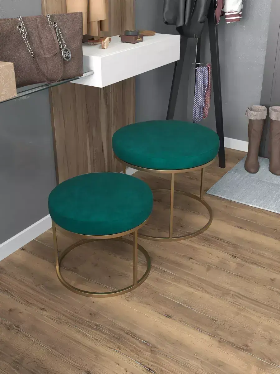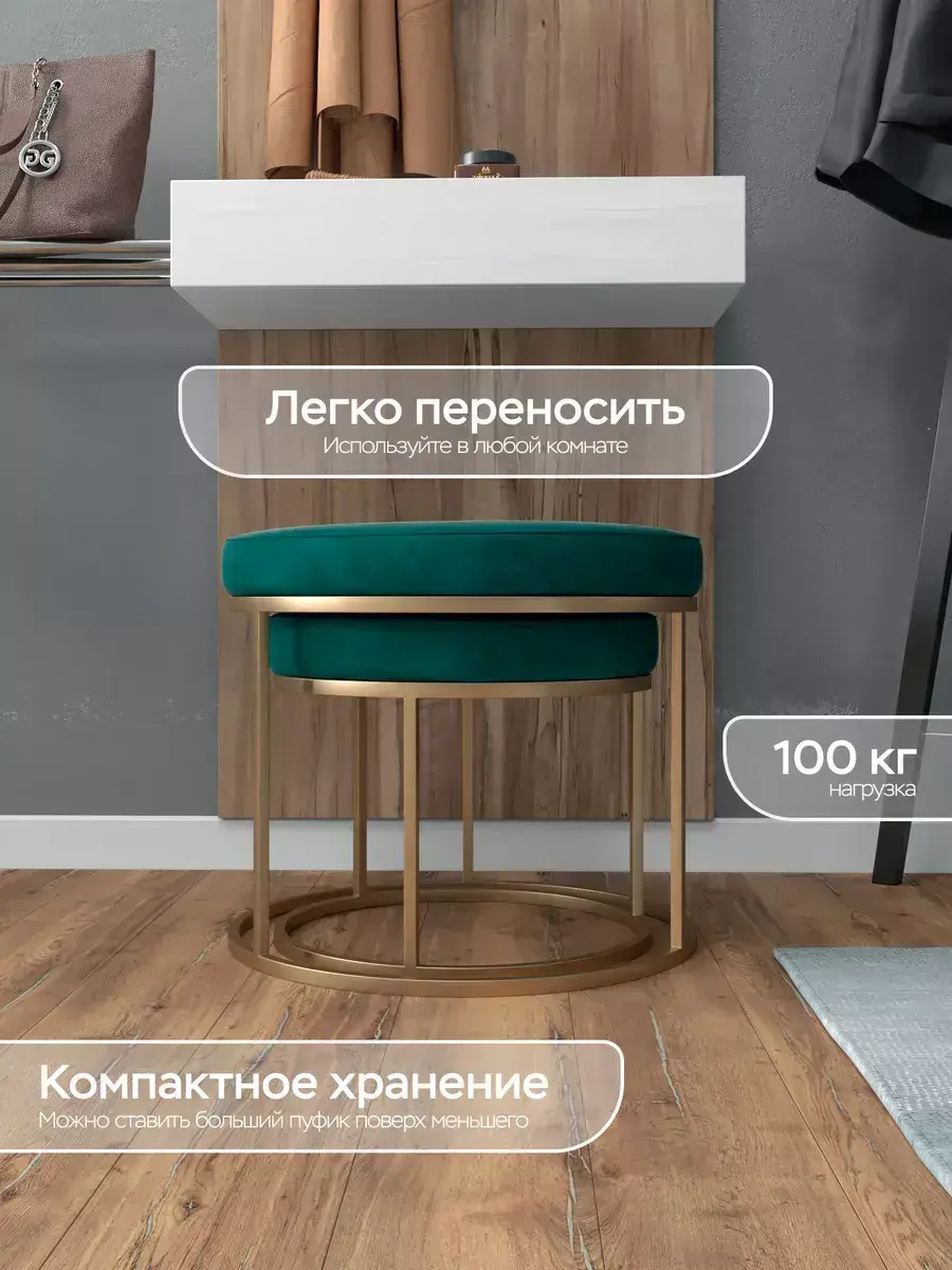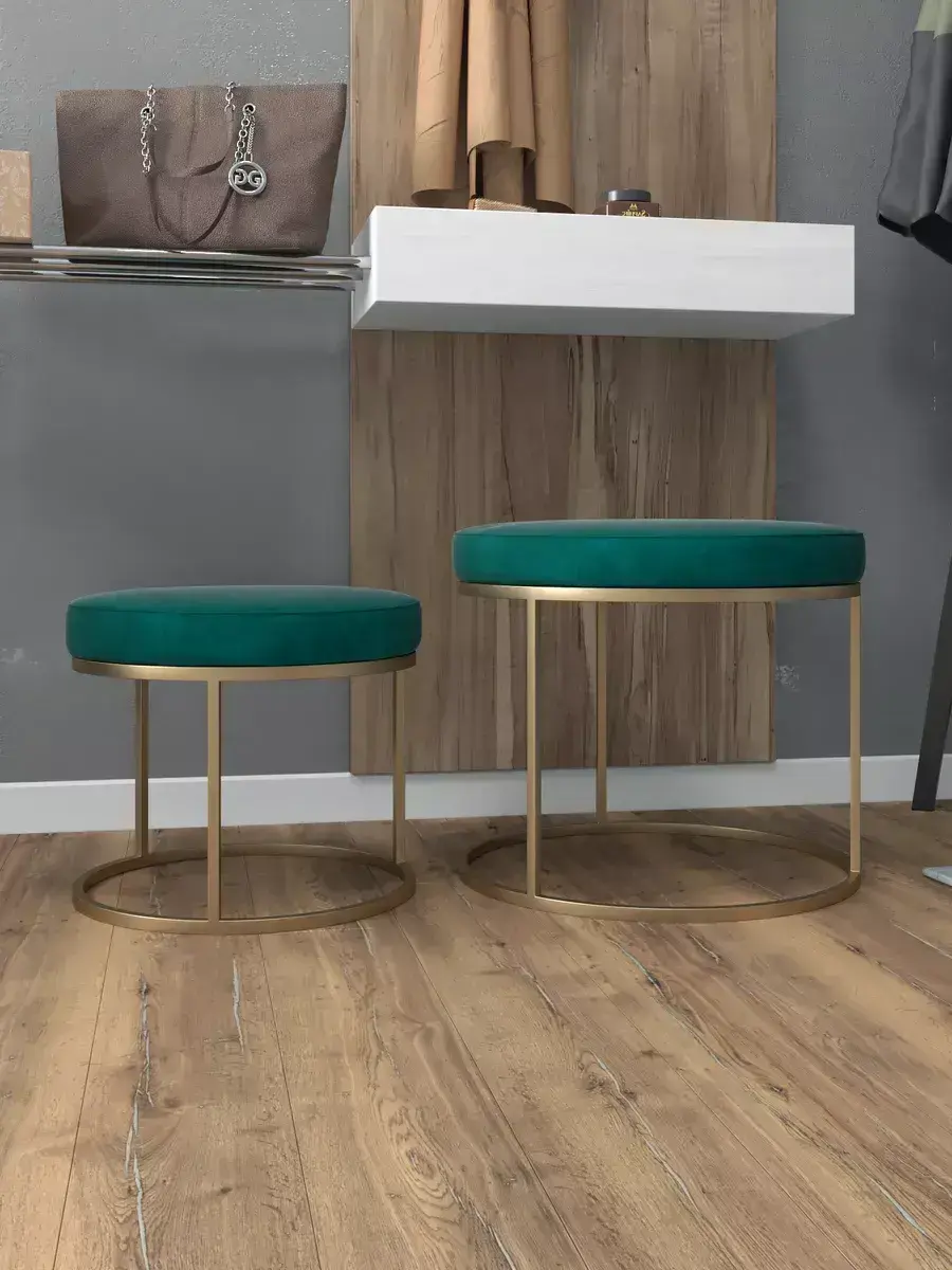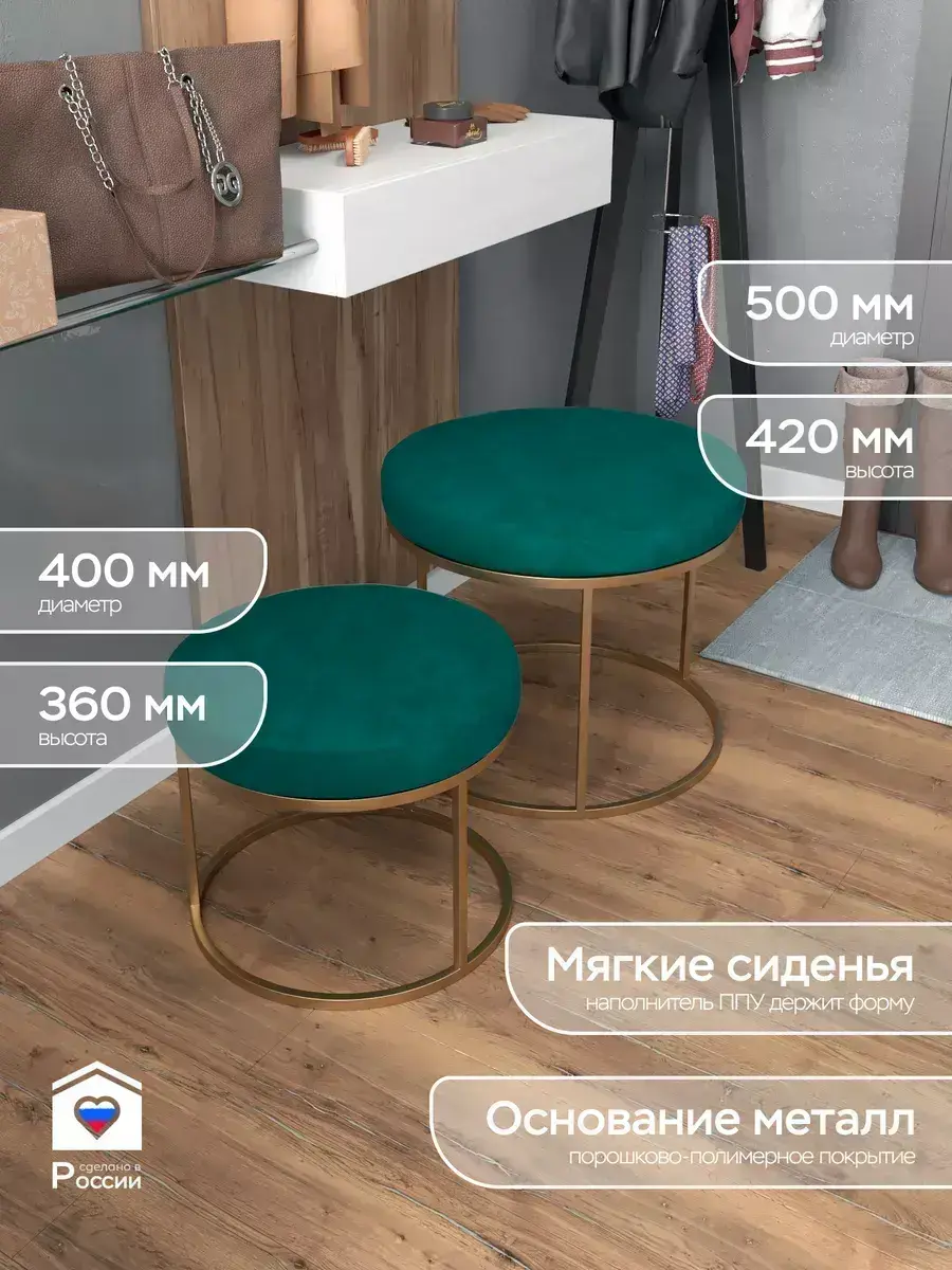 Пара пуфиков для гостиной — это стильный и функциональный предмет мебели. Они имеют прочное металлическое основание и мягкое сиденье, что делает их удобными и долговечными. Металлическое основание обеспечивает надёжность и прочность пуфиков, позволяя использовать их не только как сиденья, но и как небольшие столики или подставки для ног. Их конструкция позволяет легко перемещать пуфики по комнате, делая их универсальным решением для любого интерьера. Мягкая обивка пуфиков изготовлена из высококачественных материалов, которые сохранят свою первоначальную форму и цвет на протяжении долгого времени. Пуфики идеально подходят для гостиной, где они будут стильным акцентом и функциональным элементом. Вы сможете использовать их как дополнительное сиденье для гостей, как подставку для ног или как столик для различных предметов. Благодаря своим компактным размерам, пуфики не займут много места в вашей гостиной и легко впишутся в любой интерьер.