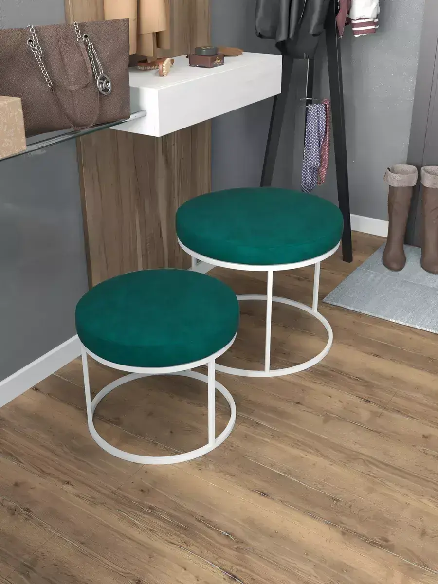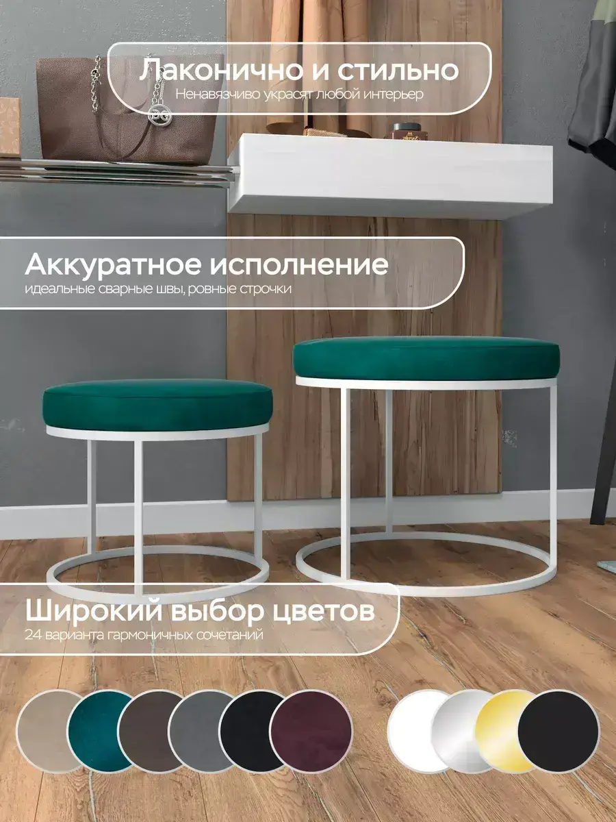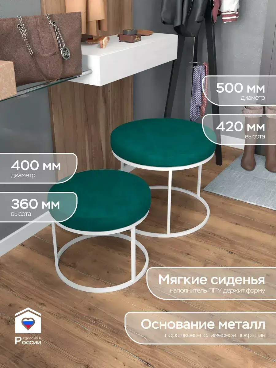 Пара пуфиков для гостиной — это стильный и функциональный предмет мебели. Они имеют прочное металлическое основание и мягкое сиденье, что делает их удобными и долговечными. Металлическое основание обеспечивает надёжность и прочность пуфиков, позволяя использовать их не только как сиденья, но и как небольшие столики или подставки для ног. Их конструкция позволяет легко перемещать пуфики по комнате, делая их универсальным решением для любого интерьера. Мягкая обивка пуфиков изготовлена из высококачественных материалов, которые сохранят свою первоначальную форму и цвет на протяжении долгого времени. Пуфики идеально подходят для гостиной, где они будут стильным акцентом и функциональным элементом. Вы сможете использовать их как дополнительное сиденье для гостей, как подставку для ног или как столик для различных предметов. Благодаря своим компактным размерам, пуфики не займут много места в вашей гостиной и легко впишутся в любой интерьер.