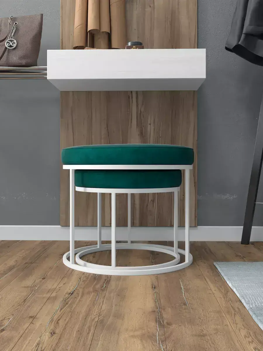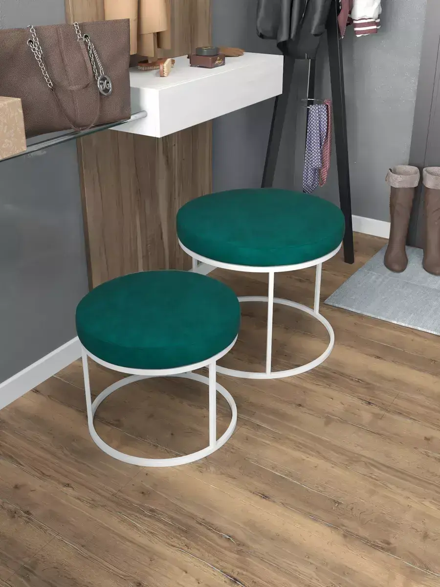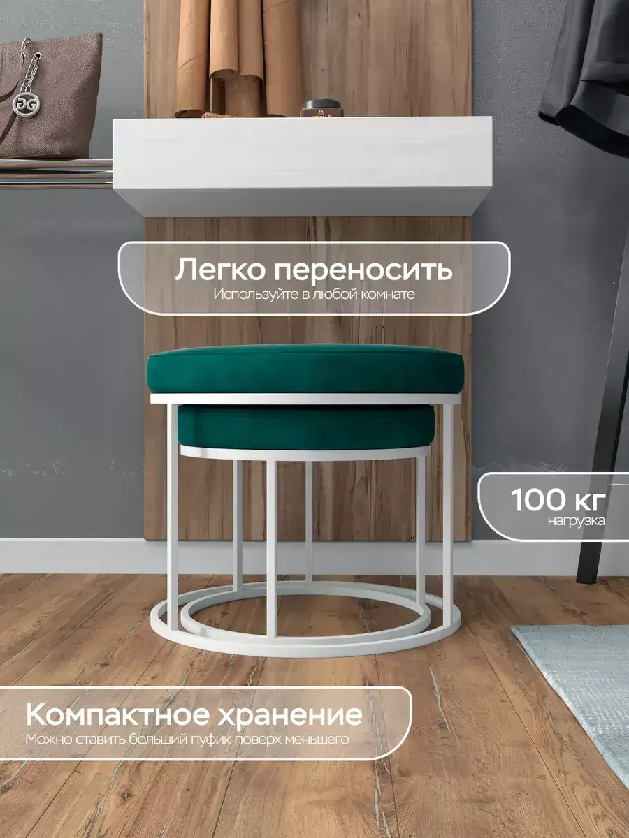 Пара пуфиков для гостиной — это стильный и функциональный предмет мебели. Они имеют прочное металлическое основание и мягкое сиденье, что делает их удобными и долговечными. Металлическое основание обеспечивает надёжность и прочность пуфиков, позволяя использовать их не только как сиденья, но и как небольшие столики или подставки для ног. Их конструкция позволяет легко перемещать пуфики по комнате, делая их универсальным решением для любого интерьера. Мягкая обивка пуфиков изготовлена из высококачественных материалов, которые сохранят свою первоначальную форму и цвет на протяжении долгого времени. Пуфики идеально подходят для гостиной, где они будут стильным акцентом и функциональным элементом. Вы сможете использовать их как дополнительное сиденье для гостей, как подставку для ног или как столик для различных предметов. Благодаря своим компактным размерам, пуфики не займут много места в вашей гостиной и легко впишутся в любой интерьер.