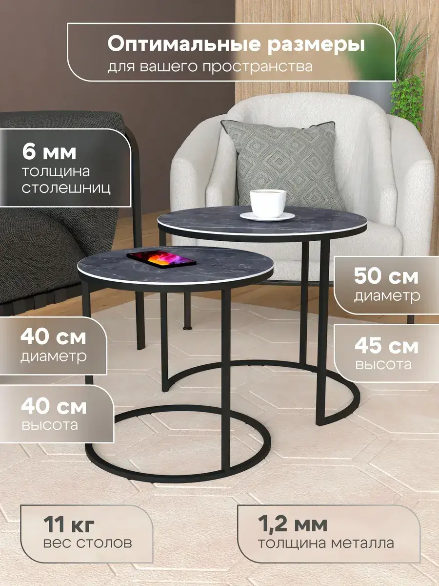 Создайте уютную атмосферу в любой комнате с этим восхитительным круглый журнальный столик. Этот стильный комплект включает два стола: большой диаметром 50 см и высотой 45 см, а также малый диаметром 40 см и высотой 40 см. Этот столик журнальный может использоваться как столик прикроватный, добавляя функциональность в спальню. Круглая форма создает ощущение гармонии и завершенности. Приставной столик выполнен в лучших традициях современного дизайна. Этот стол круглый по форме идеально подходит для создания гармоничного пространства. Вы можете выбрать из 24 вариантов цветовых решений, что позволит идеально вписать столики в ваш интерьер. Приобретите этот стильный аксессуар и почувствуйте разницу!