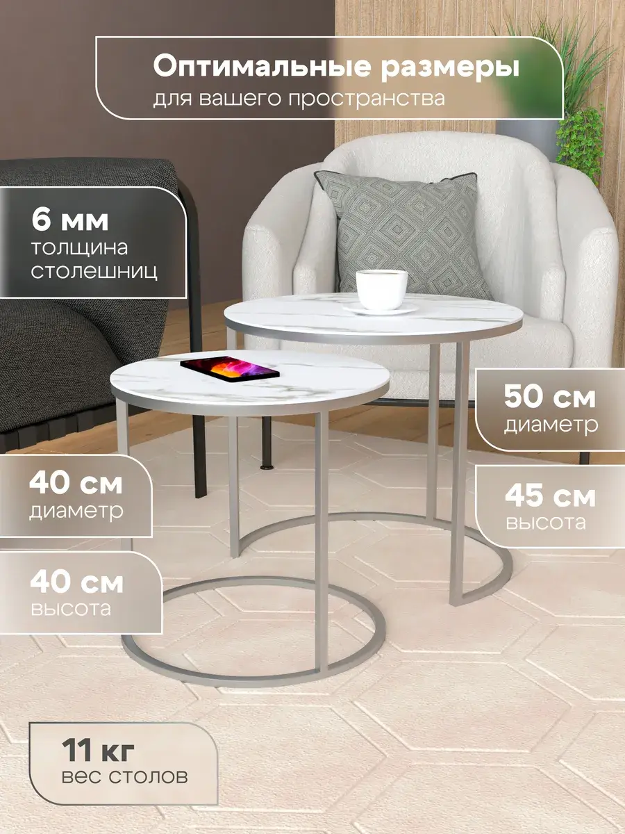 Создайте идеальную гармонию в интерьере с помощью этого прекрасного круглый журнальный столик. Этот стильный комплект включает два стола: большой диаметром 50 см и высотой 45 см, а также малый диаметром 40 см и высотой 40 см. Этот стол круглый может использоваться как столик прикроватный, добавляя функциональность в спальню. Современный стиль подчеркивает вкус владельца. Прикроватный столик выполнен в лучших традициях современного дизайна. Приставной столик выполнен в лучших традициях современного дизайна. Вы можете выбрать из 24 вариантов цветовых решений, что позволит идеально вписать столики в ваш интерьер. Закажите сегодня и получите не просто мебель, а произведение искусства!