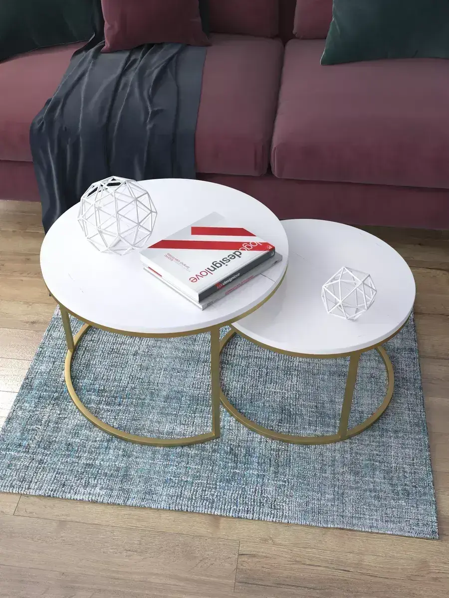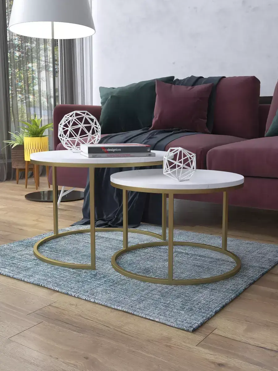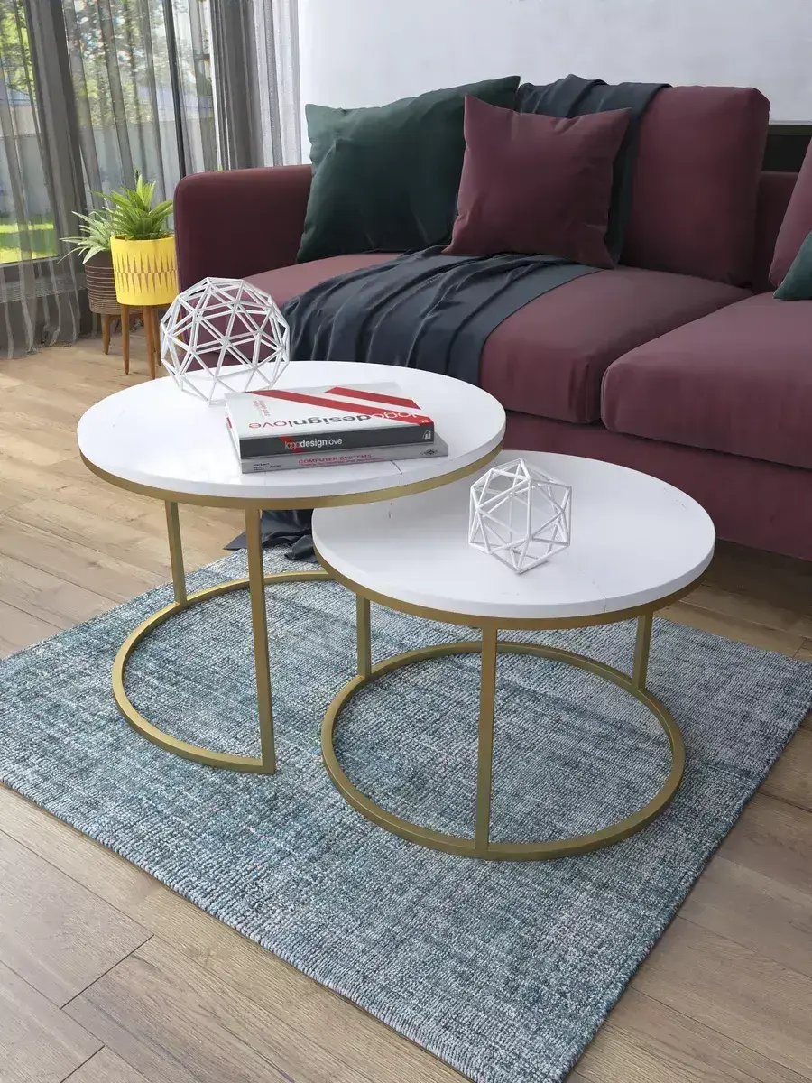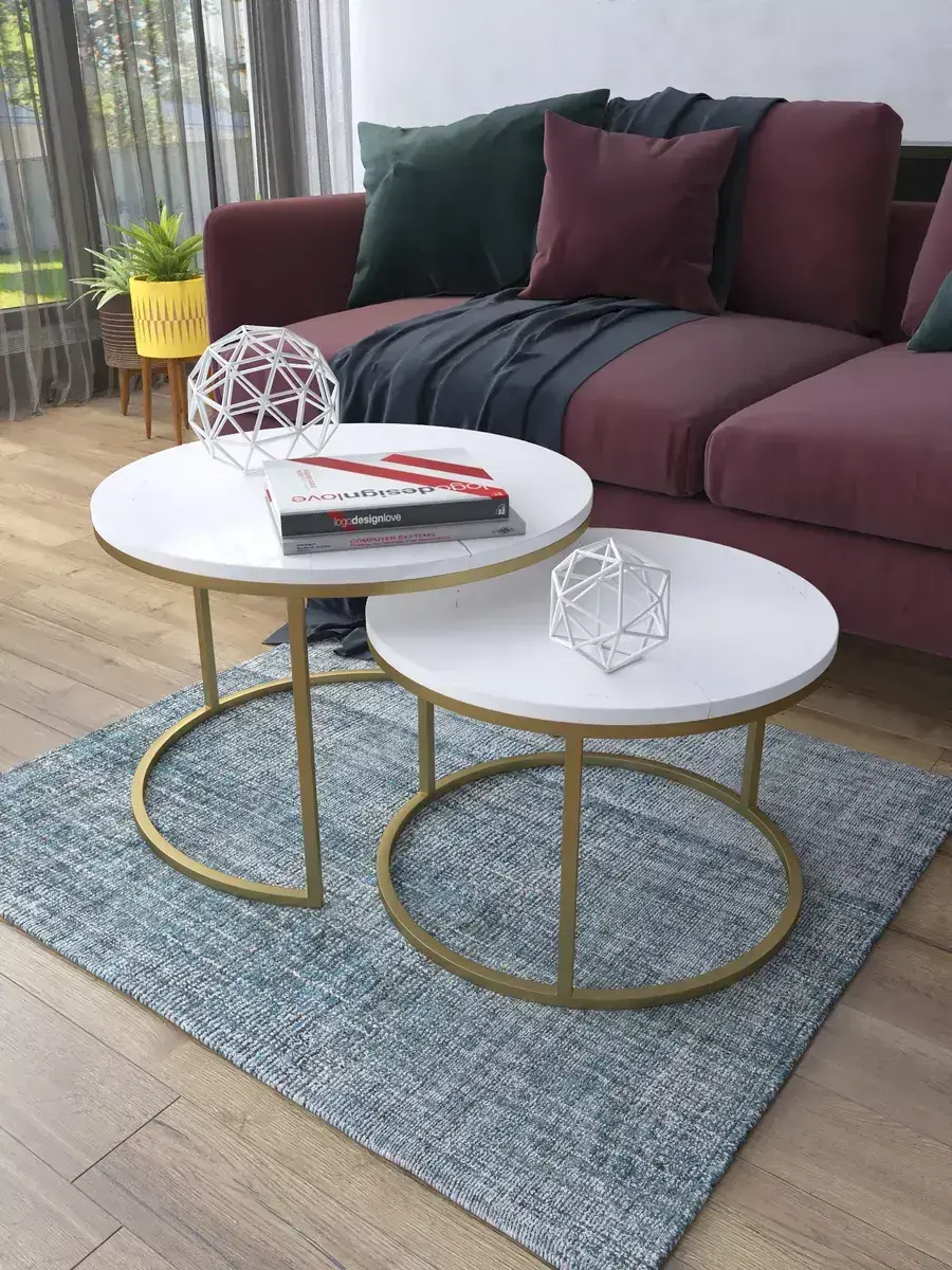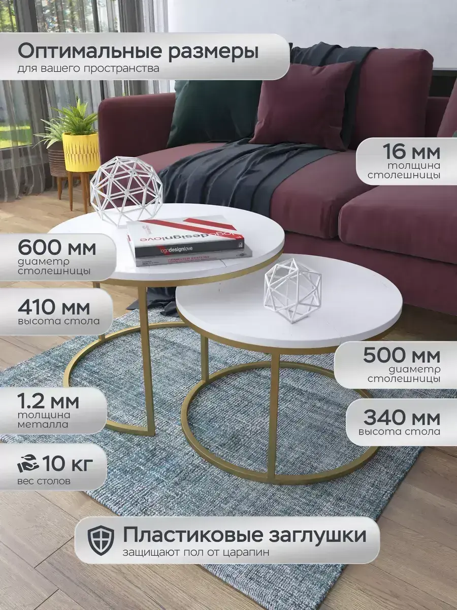 Пара журнальных столов "Акцент" — это стильное и функциональное дополнение к вашему интерьеру. Его уникальный дизайн и высокое качество сразу привлекают внимание. Столешницы влагостойкие, а основания покрыты прочной полимерно-порошковой краской. Благодаря этому они не только привлекательно выглядят, но и очень практичны. Конструкция столиков надёжна, они выдерживают нагрузку на столешницу до 30 кг. Это позволяет разместить на них различные предметы декора или напитки. Высота большего стола 41см, диаметр - 60см; высота малого столика - 34см, диаметр - 50см. Цвет основания: золото, столешницы: мрамор белый глянцевый. Основание выполнено из квадратной профильной трубы 15х15 толщиной 1.2мм Эти журнальные столики удобны в использовании. Они не царапают пол и не шатаются, обеспечивая дополнительный комфорт при эксплуатации. Производство в России гарантирует высокое качество товара и его соответствие всем стандартам. Кроме того, столики поставляются уже собранными. Вам не придётся тратить время и силы на их сборку. Просто распакуйте и наслаждайтесь преимуществами этих прекрасных изделий. Круглые журнальные столики со столешницей под мрамор — это не просто мебель. Это настоящее произведение искусства, которое подчеркнёт ваш вкус и станет главным акцентом в вашем доме. Покупая эти столики, вы получаете не только функциональную мебель, но и предмет декора, который добавит шарма и уюта в ваше пространство. Не упустите возможность купить эти уникальные журнальные столики и создать уютный уголок в вашем доме,на радость каждый день.