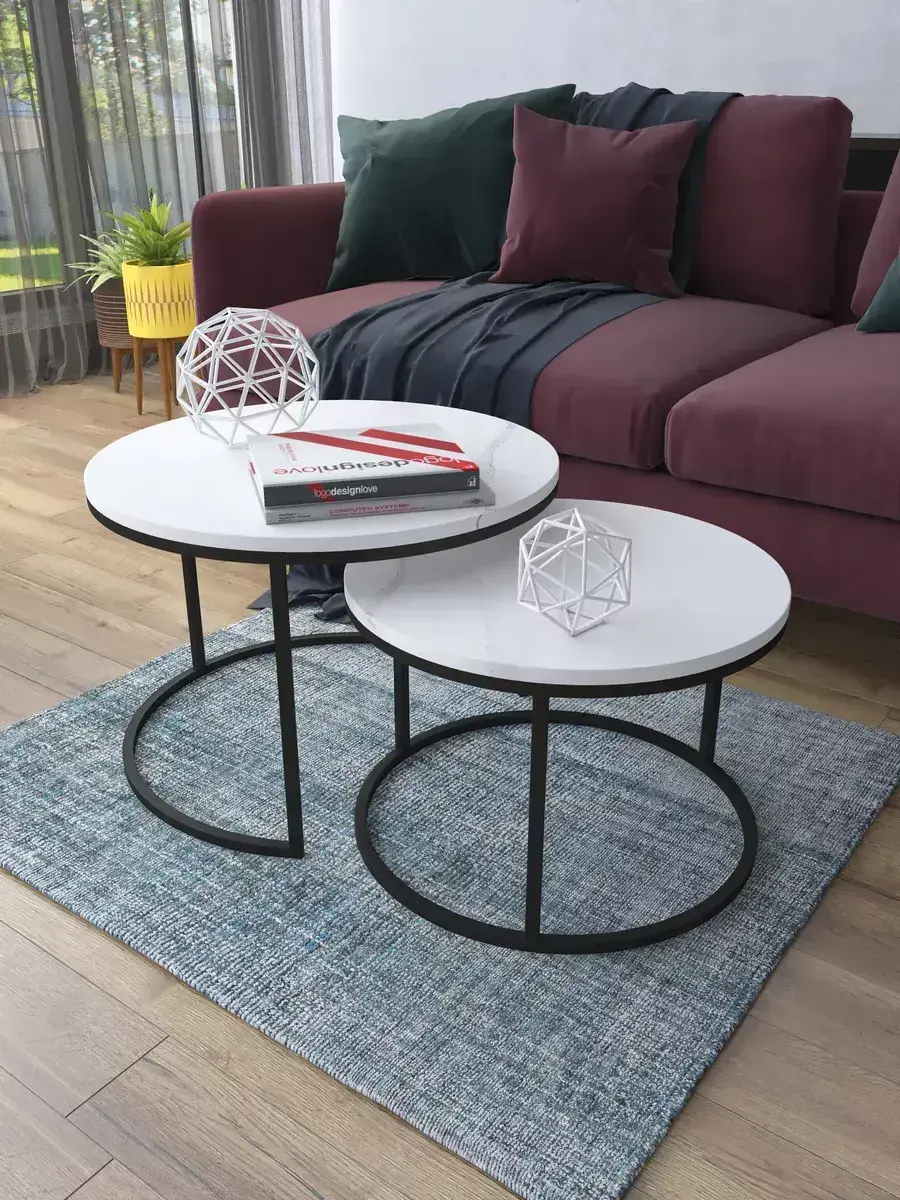 Пара журнальных столов "Акцент" — это стильное и функциональное дополнение к вашему интерьеру. Его уникальный дизайн и высокое качество сразу привлекают внимание. Столешницы влагостойкие, а основания покрыты прочной полимерно-порошковой краской. Благодаря этому они не только привлекательно выглядят, но и очень практичны. Конструкция столиков надёжна, они выдерживают нагрузку на столешницу до 30 кг. Это позволяет разместить на них различные предметы декора или напитки. Высота большего стола 41см, диаметр - 60см; высота малого столика - 34см, диаметр - 50см. Цвет основания: черный, столешницы: мрамор белый матовый. Основание выполнено из квадратной профильной трубы 15х15 толщиной 1.2мм Эти журнальные столики удобны в использовании. Они не царапают пол и не шатаются, обеспечивая дополнительный комфорт при эксплуатации. Производство в России гарантирует высокое качество товара и его соответствие всем стандартам. Кроме того, столики поставляются уже собранными. Вам не придётся тратить время и силы на их сборку. Просто распакуйте и наслаждайтесь преимуществами этих прекрасных изделий. Круглые журнальные столики со столешницей под мрамор — это не просто мебель. Это настоящее произведение искусства, которое подчеркнёт ваш вкус и станет главным акцентом в вашем доме. Покупая эти столики, вы получаете не только функциональную мебель, но и предмет декора, который добавит шарма и уюта в ваше пространство. Не упустите возможность купить эти уникальные журнальные столики и создать уютный уголок в вашем доме,на радость каждый день.