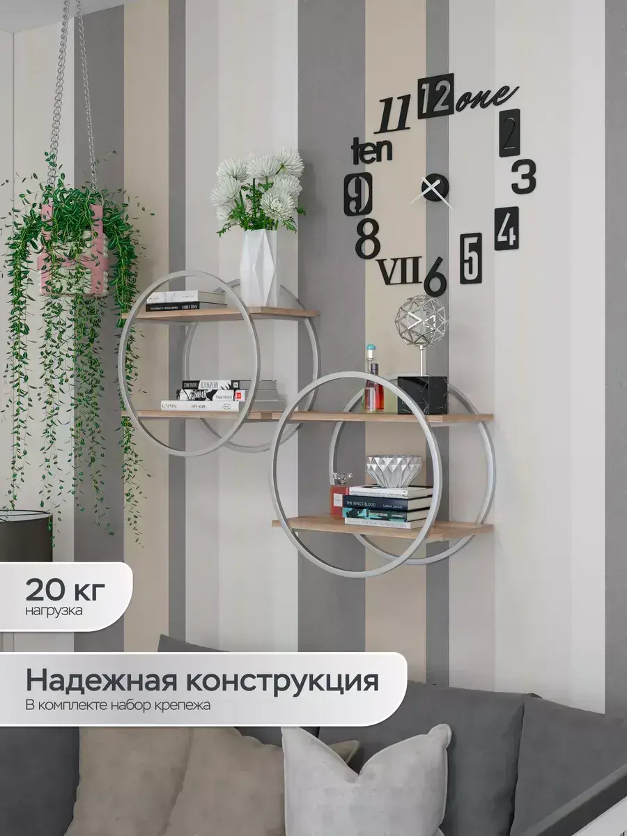 Хотите придать своей гостиной комнате или кухне стильный вид? Обратите внимание на нашу новую круглую настенную полку! Эта полка не только украсит ваш интерьер, но и поможет организовать хранение различных предметов. Она идеально впишется в любой дизайн благодаря разнообразию расцветок. Полка выполнена из ЛДСП, что обеспечивает её прочность и долговечность. Она проста в уходе, поэтому поддерживать порядок в вашем доме будет легко. Кроме того, надёжное крепление к стене гарантирует безопасность использования. Обратите внимание, что полка не предназначена для использования во влажных помещениях. Попадание воды и жидкостей на поверхность полки может привести к её разбуханию и разрушению. Поэтому рекомендуется избегать контакта с влагой. Не упустите возможность добавить яркий акцент в ваш дом с помощью нашей круглой настенной полки! Создайте уют и комфорт с современной мебелью для гостиной и спальной комнаты.