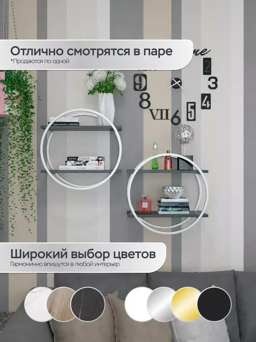 Хотите придать своей гостиной комнате или кухне стильный вид? Обратите внимание на нашу новую круглую настенную полку! Эта полка не только украсит ваш интерьер, но и поможет организовать хранение различных предметов. Она идеально впишется в любой дизайн благодаря разнообразию расцветок. Полка выполнена из ЛДСП, что обеспечивает её прочность и долговечность. Она проста в уходе, поэтому поддерживать порядок в вашем доме будет легко. Кроме того, надёжное крепление к стене гарантирует безопасность использования. Обратите внимание, что полка не предназначена для использования во влажных помещениях. Попадание воды и жидкостей на поверхность полки может привести к её разбуханию и разрушению. Поэтому рекомендуется избегать контакта с влагой. Не упустите возможность добавить яркий акцент в ваш дом с помощью нашей круглой настенной полки! Создайте уют и комфорт с современной мебелью для гостиной и спальной комнаты.