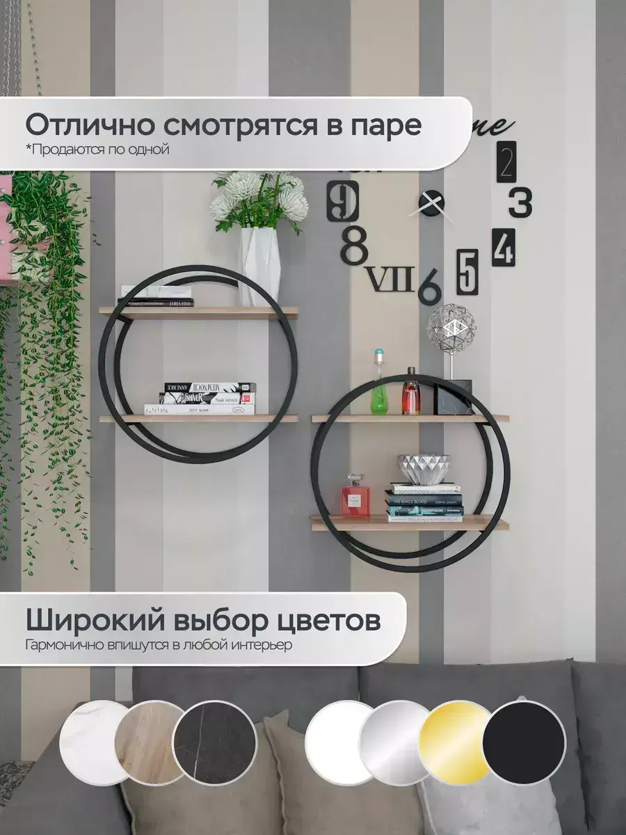Хотите придать своей гостиной комнате или кухне стильный вид? Обратите внимание на нашу новую круглую настенную полку! Эта полка не только украсит ваш интерьер, но и поможет организовать хранение различных предметов. Она идеально впишется в любой дизайн благодаря разнообразию расцветок. Полка выполнена из ЛДСП, что обеспечивает её прочность и долговечность. Она проста в уходе, поэтому поддерживать порядок в вашем доме будет легко. Кроме того, надёжное крепление к стене гарантирует безопасность использования. Обратите внимание, что полка не предназначена для использования во влажных помещениях. Попадание воды и жидкостей на поверхность полки может привести к её разбуханию и разрушению. Поэтому рекомендуется избегать контакта с влагой. Не упустите возможность добавить яркий акцент в ваш дом с помощью нашей круглой настенной полки! Создайте уют и комфорт с современной мебелью для гостиной и спальной комнаты.