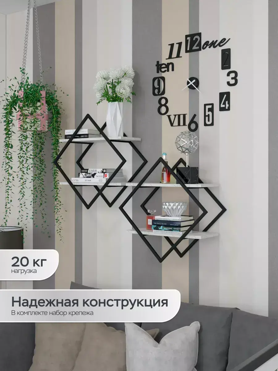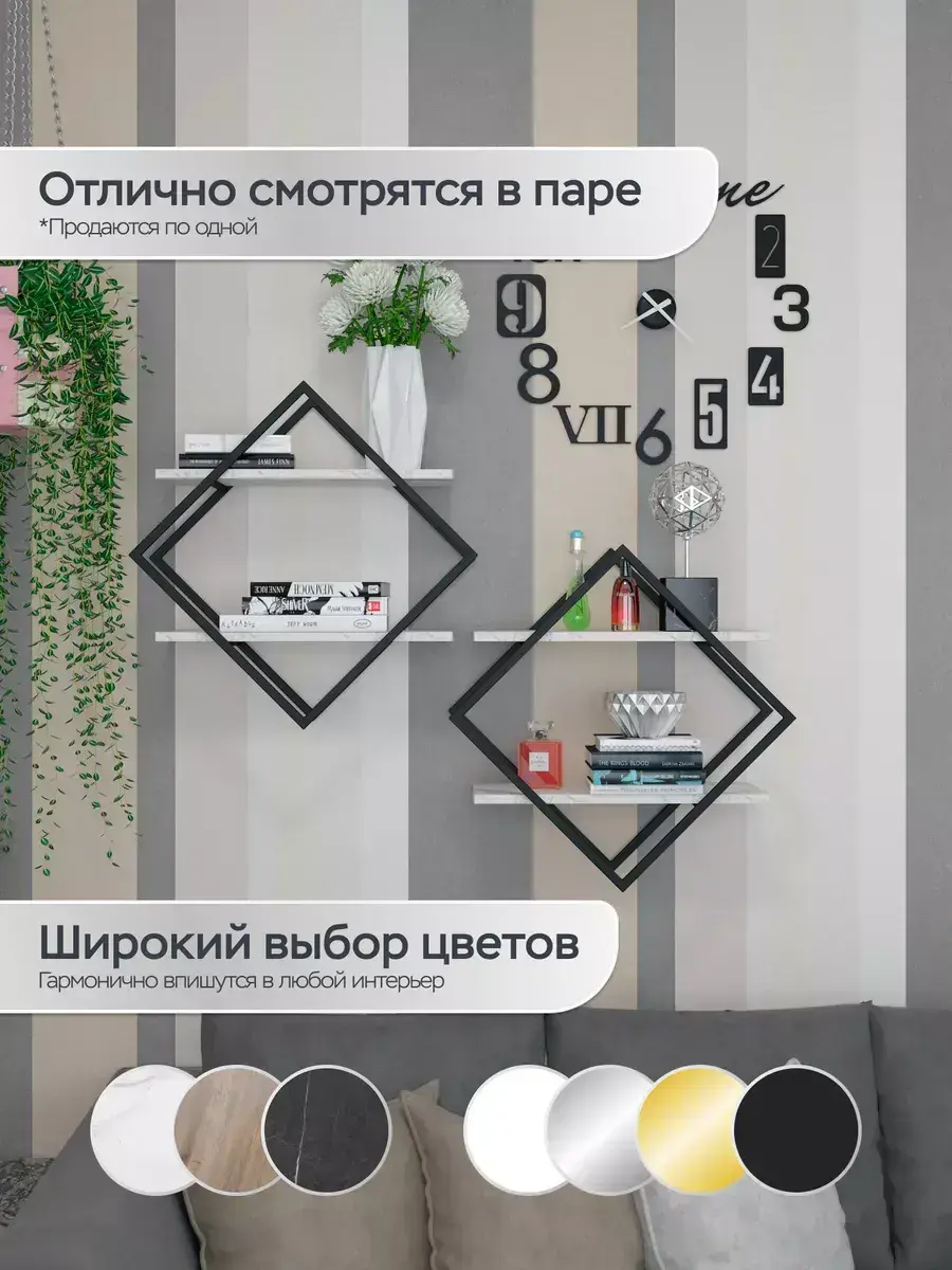 Хотите добавить стиля и функциональности в свою гостиную комнату или кухню? Обратите внимание на нашу новинку — настенную полку «Ромб»! Эта полка не только украсит ваш интерьер, но и поможет организовать хранение различных предметов. Благодаря разнообразию расцветок она легко впишется в любой дизайн. Полка изготовлена из ЛДСП, что обеспечивает ей прочность и долговечность. Её легко поддерживать в чистоте, поэтому поддерживать порядок в вашем доме будет просто. Кроме того, надёжное крепление к стене гарантирует безопасность использования. Важно отметить, что полку не рекомендуется использовать во влажных помещениях. Контакт с водой и жидкостями может привести к разбуханию и разрушению поверхности. Поэтому избегайте попадания влаги на полку. Не упустите возможность добавить яркий акцент в ваш дом с помощью нашей стильной и функциональной настенной полки! Создавайте уют и комфорт с современной мебелью для вашей гостиной и спальной комнаты.