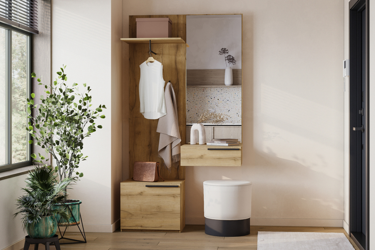 Мебель напрямую от фабрики. Можем менять габариты, цвет, варианты обивки и фасадов. Прихожая Лорена Пакс-1 отличается высоким качеством материалов и сборки, что гарантирует долговечность и надежность. Современный дизайн гармонично впишется в любой интерьер, а продуманная эргономика обеспечит максимальный комфорт. Преимущества прихожей Лорена Пакс-1 Высокое качество и долговечность Современный и стильный дизайн Продуманная эргономика для максимального комфорта Простота в уходе и обслуживании Прихожая Лорена Пакс-1 - идеальное решение для тех, кто ценит качество, комфорт и красоту. Весь ассортимент мебели от фабрики производится по самым высоким стандартам с использованием передовых технологий. Мы гарантируем безупречное качество каждого изделия и полное соответствие всем необходимым нормам и требованиям. Характеристики прихожей Лорена Пакс-1 Комплектация Тумба (Ширина*Глубина*Высота) 55*40*50 см Тумба подвесная (Ширина*Глубина*Высота) 55*40*18,4 см Вешалка (Ширина*Глубина*Высота) 55*22*170 см Зеркало 55*131,6 см Исполнение Материал фасадов: ЛДСП Дуб Золотистый U1148 Материал корпуса: ЛДСП Дуб Золотистый U1148 / Оргалит Зеркало Габариты (Ширина*Глубина*Высота) 110*40*220 см Гарантия: 24 месяца Обновлено:15.10.2025