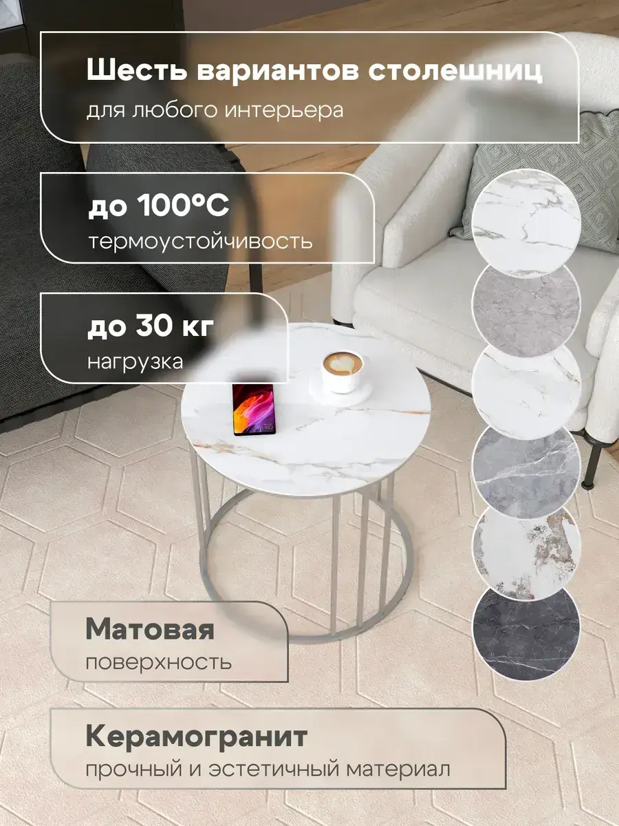 Журнальный столик "Трио малый" от бренда "Акцент интерьера" станет стильным и функциональным дополнением вашего интерьера. Круглая столешница из прочного и износостойкого керамогранита диаметром 50 см идеально подходит для размещения чашек, книг или декоративных элементов. Благодаря лаконичному дизайну в стиле лофт, классика или модерн, столик гармонично впишется в гостиную, спальню или даже на балкон. "Трио малый" изготовлен из качественных материалов: металлический корпус и ножки из полиуретана обеспечивают устойчивость и долговечность.