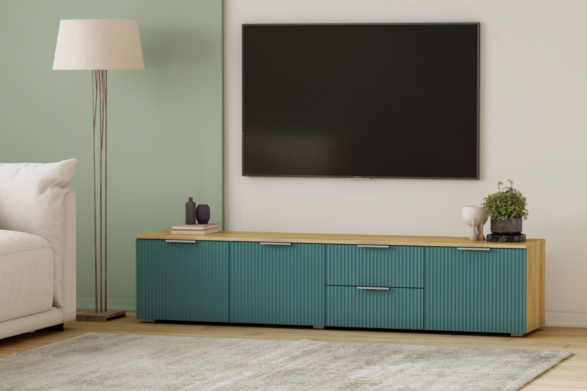 Мебель напрямую от фабрики. Можем менять габариты, цвет, варианты обивки и фасадов. ТВ-тумба Салерно 1 (МДФ) отличается высоким качеством материалов и сборки, что гарантирует долговечность и надежность. Современный дизайн гармонично впишется в любой интерьер, а продуманная эргономика обеспечит максимальный комфорт. Преимущества ТВ-тумбы Салерно 1 (МДФ) Высокое качество и долговечность Современный и стильный дизайн Продуманная эргономика для максимального комфорта Простота в уходе и обслуживании ТВ-тумба Салерно 1 (МДФ) - идеальное решение для тех, кто ценит качество, комфорт и красоту. Весь ассортимент мебели от фабрики производится по самым высоким стандартам с использованием передовых технологий. Мы гарантируем безупречное качество каждого изделия и полное соответствие всем необходимым нормам и требованиям. Характеристики ТВ-тумбы Салерно 1 (МДФ) Исполнение Материал фасадов: SF-013 Аквамарин Материал корпуса: ЛДСП Дуб Золотистый U1148 / Оргалит Габариты (Ширина*Глубина*Высота) 197*42*43 см Гарантия: 24 месяца Обновлено:15.10.2025