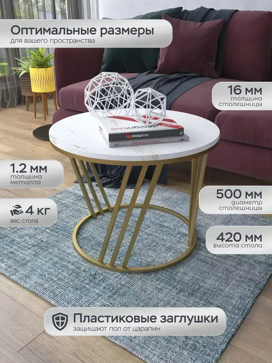 Журнальный стол "Адидас" — это стильное и функциональное дополнение к вашему интерьеру. Его уникальный дизайн и высокое качество сразу привлекают внимание. Столешница влагостойкая, а основание покрыто прочной полимерно-порошковой краской. Благодаря этому он не только привлекательно выглядит, но и очень практичен. Конструкция столика надёжна, он выдерживает нагрузку на столешницу до 30 кг. Это позволяет разместить на нём различные предметы декора или напитки. Цвет основания: золото, столешницы: мрамор золото белый матовый. Основание выполнено из квадратной профильной трубы 15х15 толщиной 1.2мм Этот журнальный столик удобен в использовании. Он не царапает пол и не шатается, обеспечивая дополнительный комфорт при эксплуатации. Производство в России гарантирует высокое качество товара и его соответствие всем стандартам. Кроме того, столик поставляется уже собранным. Вам не придётся тратить время и силы на его сборку. Просто распакуйте его и наслаждайтесь преимуществами этого прекрасного изделия. Круглый журнальный столик со столешницей под мрамор — это не просто мебель. Это настоящее произведение искусства, которое подчеркнёт ваш вкус и станет главным акцентом в вашем доме. Покупая этот столик, вы получаете не только функциональную мебель, но и предмет декора, который добавит шарма и уюта в ваше пространство. Не упустите возможность купить этот уникальный журнальный столик и создать уютный уголок в вашем доме, который будет радовать вас каждый день.