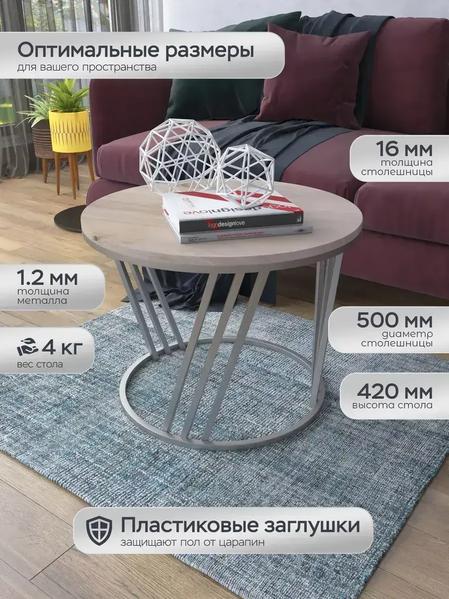 Журнальный стол "Адидас" — это стильное и функциональное дополнение к вашему интерьеру. Его уникальный дизайн и высокое качество сразу привлекают внимание. Столешница влагостойкая, а основание покрыто прочной полимерно-порошковой краской. Благодаря этому он не только привлекательно выглядит, но и очень практичен. Конструкция столика надёжна, он выдерживает нагрузку на столешницу до 30 кг. Это позволяет разместить на нём различные предметы декора или напитки. Цвет основания: серебро, столешницы: дуб натуральный. Основание выполнено из квадратной профильной трубы 15х15 толщиной 1.2мм Этот журнальный столик удобен в использовании. Он не царапает пол и не шатается, обеспечивая дополнительный комфорт при эксплуатации. Производство в России гарантирует высокое качество товара и его соответствие всем стандартам. Кроме того, столик поставляется уже собранным. Вам не придётся тратить время и силы на его сборку. Просто распакуйте его и наслаждайтесь преимуществами этого прекрасного изделия. Круглый журнальный столик со столешницей под мрамор — это не просто мебель. Это настоящее произведение искусства, которое подчеркнёт ваш вкус и станет главным акцентом в вашем доме. Покупая этот столик, вы получаете не только функциональную мебель, но и предмет декора, который добавит шарма и уюта в ваше пространство. Не упустите возможность купить этот уникальный журнальный столик и создать уютный уголок в вашем доме, который будет радовать вас каждый день.