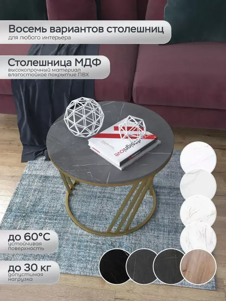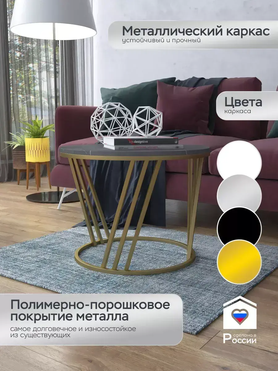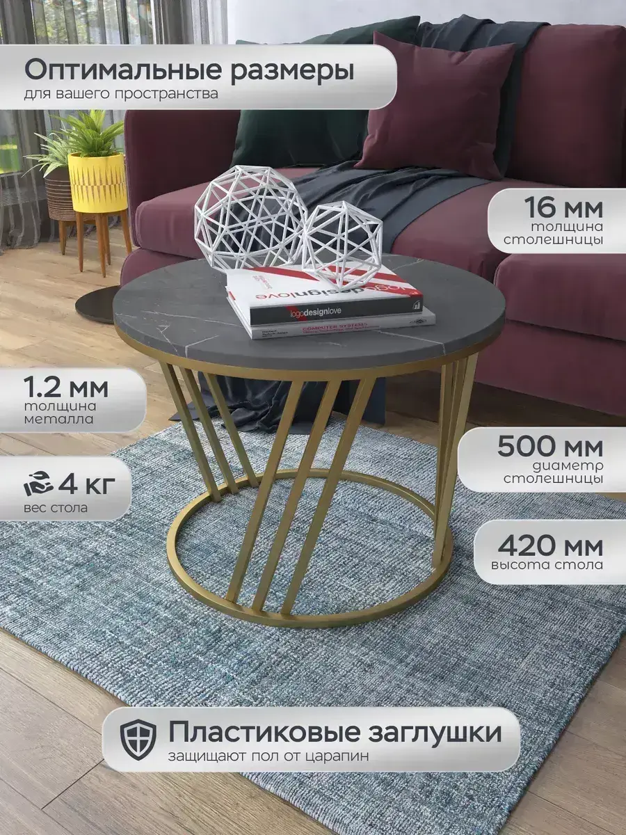 Журнальный стол "Адидас" — это стильное и функциональное дополнение к вашему интерьеру. Его уникальный дизайн и высокое качество сразу привлекают внимание. Столешница влагостойкая, а основание покрыто прочной полимерно-порошковой краской. Благодаря этому он не только привлекательно выглядит, но и очень практичен. Конструкция столика надёжна, он выдерживает нагрузку на столешницу до 30 кг. Это позволяет разместить на нём различные предметы декора или напитки. Цвет основания: золото, столешницы: мрамор серебро черный матовый. Основание выполнено из квадратной профильной трубы 15х15 толщиной 1.2мм Этот журнальный столик удобен в использовании. Он не царапает пол и не шатается, обеспечивая дополнительный комфорт при эксплуатации. Производство в России гарантирует высокое качество товара и его соответствие всем стандартам. Кроме того, столик поставляется уже собранным. Вам не придётся тратить время и силы на его сборку. Просто распакуйте его и наслаждайтесь преимуществами этого прекрасного изделия. Круглый журнальный столик со столешницей под мрамор — это не просто мебель. Это настоящее произведение искусства, которое подчеркнёт ваш вкус и станет главным акцентом в вашем доме. Покупая этот столик, вы получаете не только функциональную мебель, но и предмет декора, который добавит шарма и уюта в ваше пространство. Не упустите возможность купить этот уникальный журнальный столик и создать уютный уголок в вашем доме, который будет радовать вас каждый день.