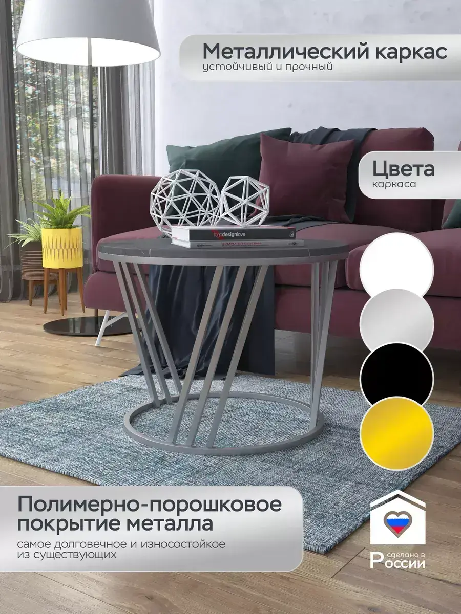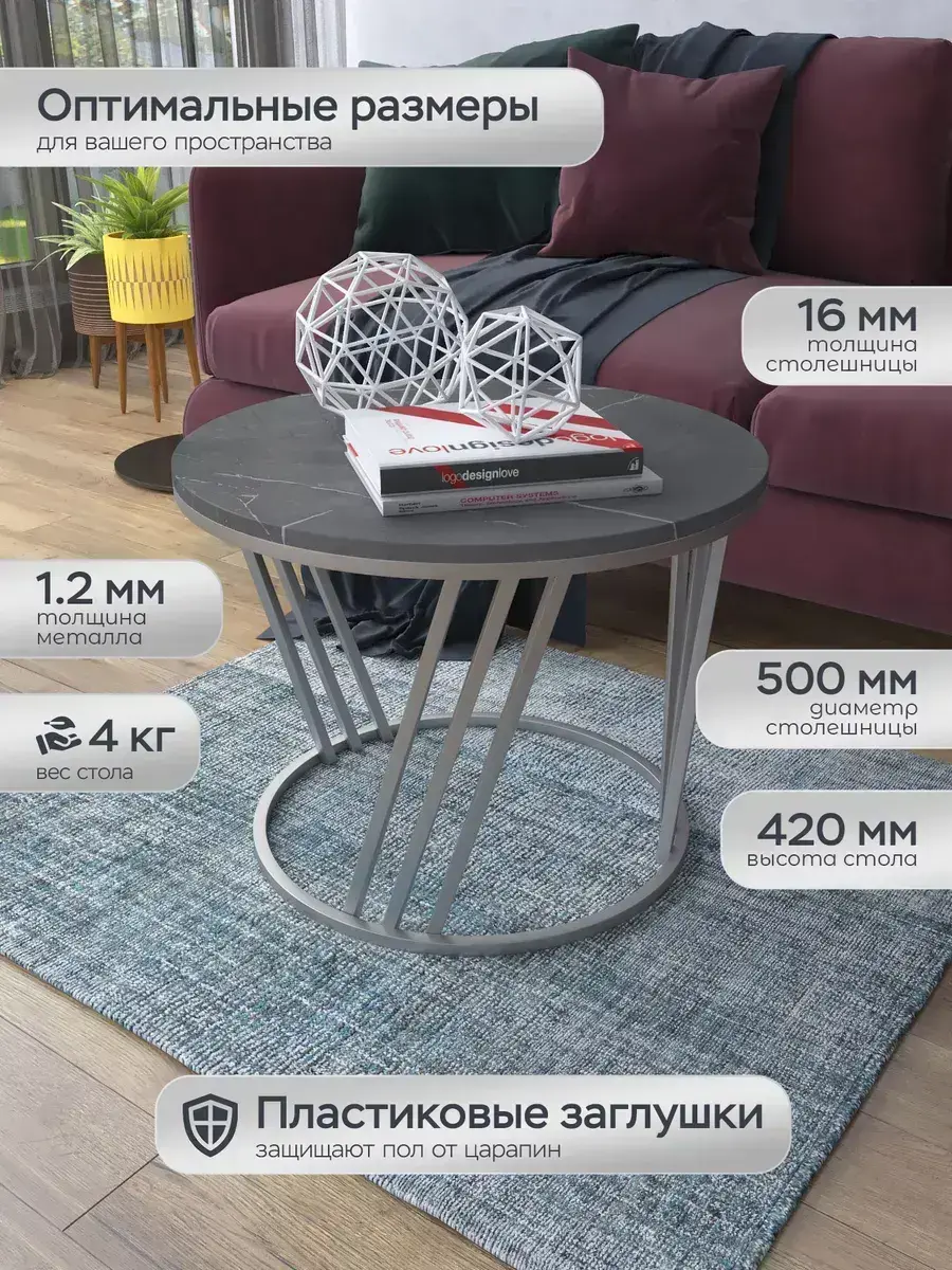 Журнальный стол "Адидас" — это стильное и функциональное дополнение к вашему интерьеру. Его уникальный дизайн и высокое качество сразу привлекают внимание. Столешница влагостойкая, а основание покрыто прочной полимерно-порошковой краской. Благодаря этому он не только привлекательно выглядит, но и очень практичен. Конструкция столика надёжна, он выдерживает нагрузку на столешницу до 30 кг. Это позволяет разместить на нём различные предметы декора или напитки. Цвет основания: серебро, столешницы: мрамор серебро черный матовый. Основание выполнено из квадратной профильной трубы 15х15 толщиной 1.2мм Этот журнальный столик удобен в использовании. Он не царапает пол и не шатается, обеспечивая дополнительный комфорт при эксплуатации. Производство в России гарантирует высокое качество товара и его соответствие всем стандартам. Кроме того, столик поставляется уже собранным. Вам не придётся тратить время и силы на его сборку. Просто распакуйте его и наслаждайтесь преимуществами этого прекрасного изделия. Круглый журнальный столик со столешницей под мрамор — это не просто мебель. Это настоящее произведение искусства, которое подчеркнёт ваш вкус и станет главным акцентом в вашем доме. Покупая этот столик, вы получаете не только функциональную мебель, но и предмет декора, который добавит шарма и уюта в ваше пространство. Не упустите возможность купить этот уникальный журнальный столик и создать уютный уголок в вашем доме, который будет радовать вас каждый день.