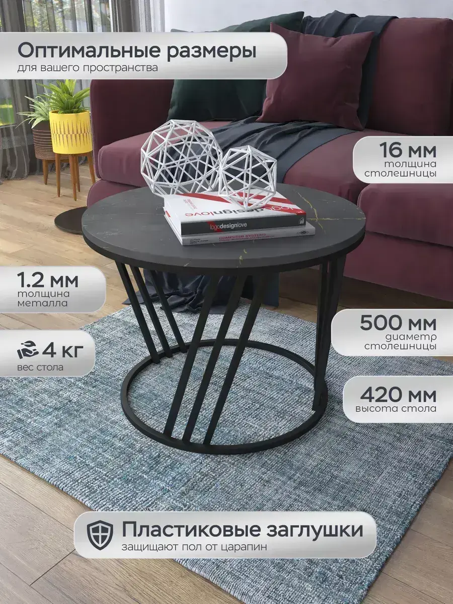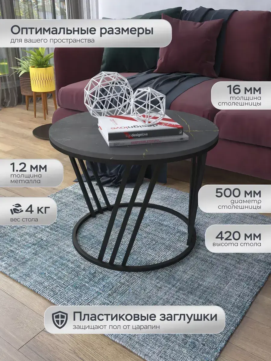 Журнальный стол "Адидас" — это стильное и функциональное дополнение к вашему интерьеру. Его уникальный дизайн и высокое качество сразу привлекают внимание. Столешница влагостойкая, а основание покрыто прочной полимерно-порошковой краской. Благодаря этому он не только привлекательно выглядит, но и очень практичен. Конструкция столика надёжна, он выдерживает нагрузку на столешницу до 30 кг. Это позволяет разместить на нём различные предметы декора или напитки. Цвет основания: черный, столешницы: мрамор золото черный матовый. Основание выполнено из квадратной профильной трубы 15х15 толщиной 1.2мм Этот журнальный столик удобен в использовании. Он не царапает пол и не шатается, обеспечивая дополнительный комфорт при эксплуатации. Производство в России гарантирует высокое качество товара и его соответствие всем стандартам. Кроме того, столик поставляется уже собранным. Вам не придётся тратить время и силы на его сборку. Просто распакуйте его и наслаждайтесь преимуществами этого прекрасного изделия. Круглый журнальный столик со столешницей под мрамор — это не просто мебель. Это настоящее произведение искусства, которое подчеркнёт ваш вкус и станет главным акцентом в вашем доме. Покупая этот столик, вы получаете не только функциональную мебель, но и предмет декора, который добавит шарма и уюта в ваше пространство. Не упустите возможность купить этот уникальный журнальный столик и создать уютный уголок в вашем доме, который будет радовать вас каждый день.