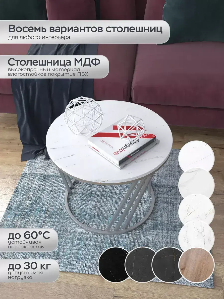 Журнальный стол "Адидас" — это стильное и функциональное дополнение к вашему интерьеру. Его уникальный дизайн и высокое качество сразу привлекают внимание. Столешница влагостойкая, а основание покрыто прочной полимерно-порошковой краской. Благодаря этому он не только привлекательно выглядит, но и очень практичен. Конструкция столика надёжна, он выдерживает нагрузку на столешницу до 30 кг. Это позволяет разместить на нём различные предметы декора или напитки. Цвет основания: серебро, столешницы: мрамор серебро белый глянцевый. Основание выполнено из квадратной профильной трубы 15х15 толщиной 1.2мм Этот журнальный столик удобен в использовании. Он не царапает пол и не шатается, обеспечивая дополнительный комфорт при эксплуатации. Производство в России гарантирует высокое качество товара и его соответствие всем стандартам. Кроме того, столик поставляется уже собранным. Вам не придётся тратить время и силы на его сборку. Просто распакуйте его и наслаждайтесь преимуществами этого прекрасного изделия. Круглый журнальный столик со столешницей под мрамор — это не просто мебель. Это настоящее произведение искусства, которое подчеркнёт ваш вкус и станет главным акцентом в вашем доме. Покупая этот столик, вы получаете не только функциональную мебель, но и предмет декора, который добавит шарма и уюта в ваше пространство. Не упустите возможность купить этот уникальный журнальный столик и создать уютный уголок в вашем доме, который будет радовать вас каждый день.
