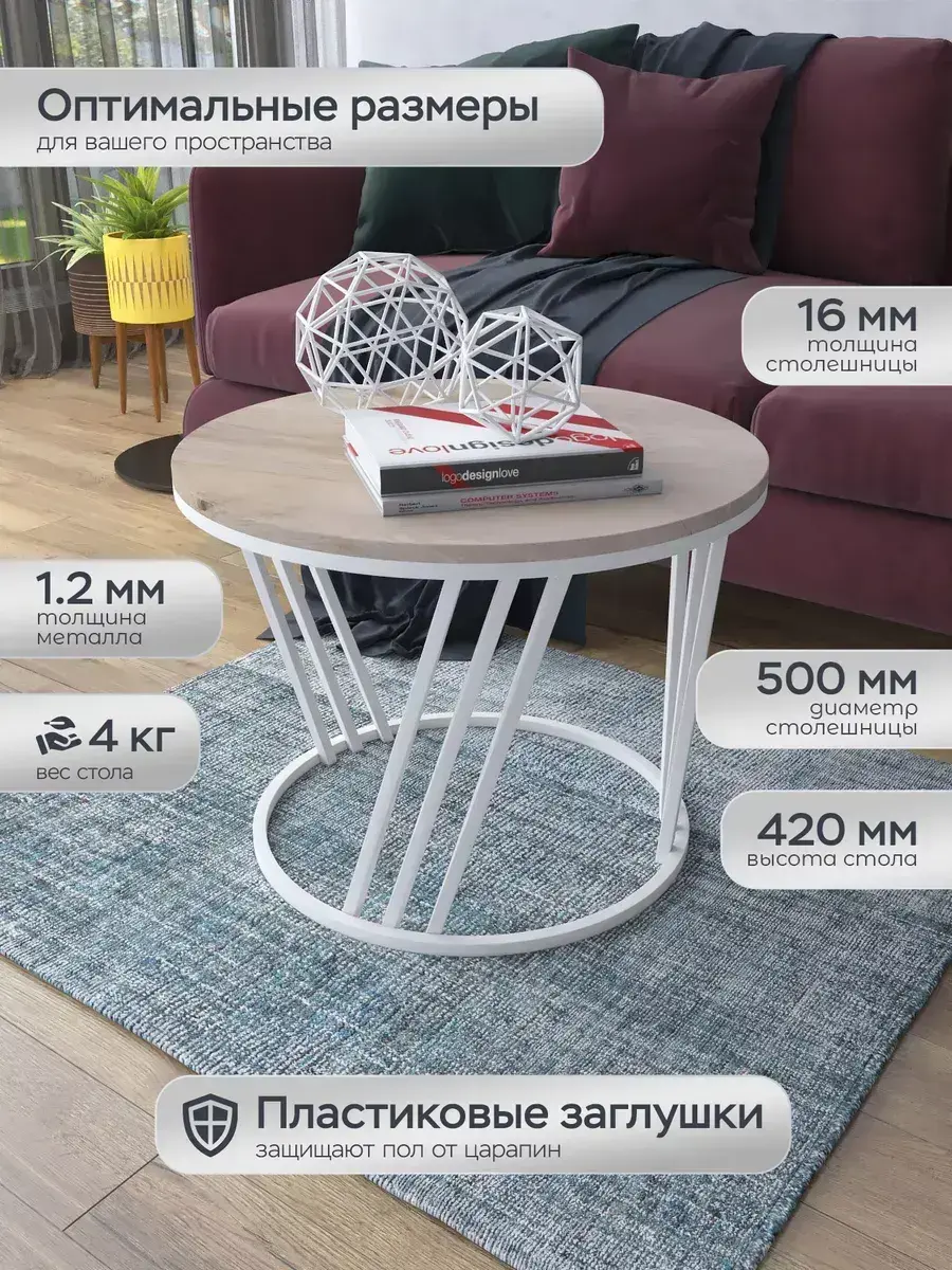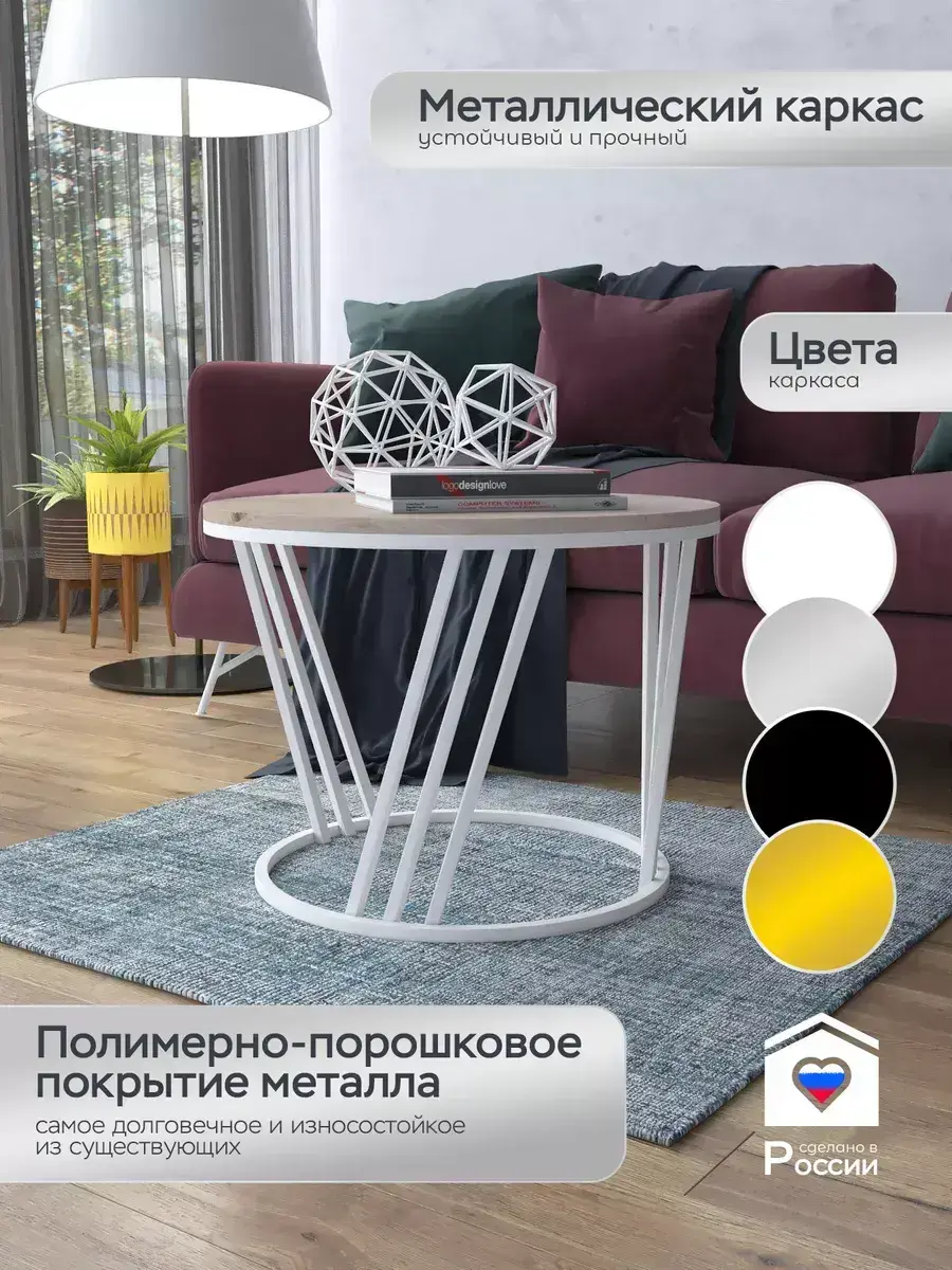 Журнальный стол "Адидас" — это стильное и функциональное дополнение к вашему интерьеру. Его уникальный дизайн и высокое качество сразу привлекают внимание. Столешница влагостойкая, а основание покрыто прочной полимерно-порошковой краской. Благодаря этому он не только привлекательно выглядит, но и очень практичен. Конструкция столика надёжна, он выдерживает нагрузку на столешницу до 30 кг. Это позволяет разместить на нём различные предметы декора или напитки. Цвет основания: белый, столешницы: дуб натуральный. Основание выполнено из квадратной профильной трубы 15х15 толщиной 1.2мм Этот журнальный столик удобен в использовании. Он не царапает пол и не шатается, обеспечивая дополнительный комфорт при эксплуатации. Производство в России гарантирует высокое качество товара и его соответствие всем стандартам. Кроме того, столик поставляется уже собранным. Вам не придётся тратить время и силы на его сборку. Просто распакуйте его и наслаждайтесь преимуществами этого прекрасного изделия. Круглый журнальный столик со столешницей под мрамор — это не просто мебель. Это настоящее произведение искусства, которое подчеркнёт ваш вкус и станет главным акцентом в вашем доме. Покупая этот столик, вы получаете не только функциональную мебель, но и предмет декора, который добавит шарма и уюта в ваше пространство. Не упустите возможность купить этот уникальный журнальный столик и создать уютный уголок в вашем доме, который будет радовать вас каждый день.
