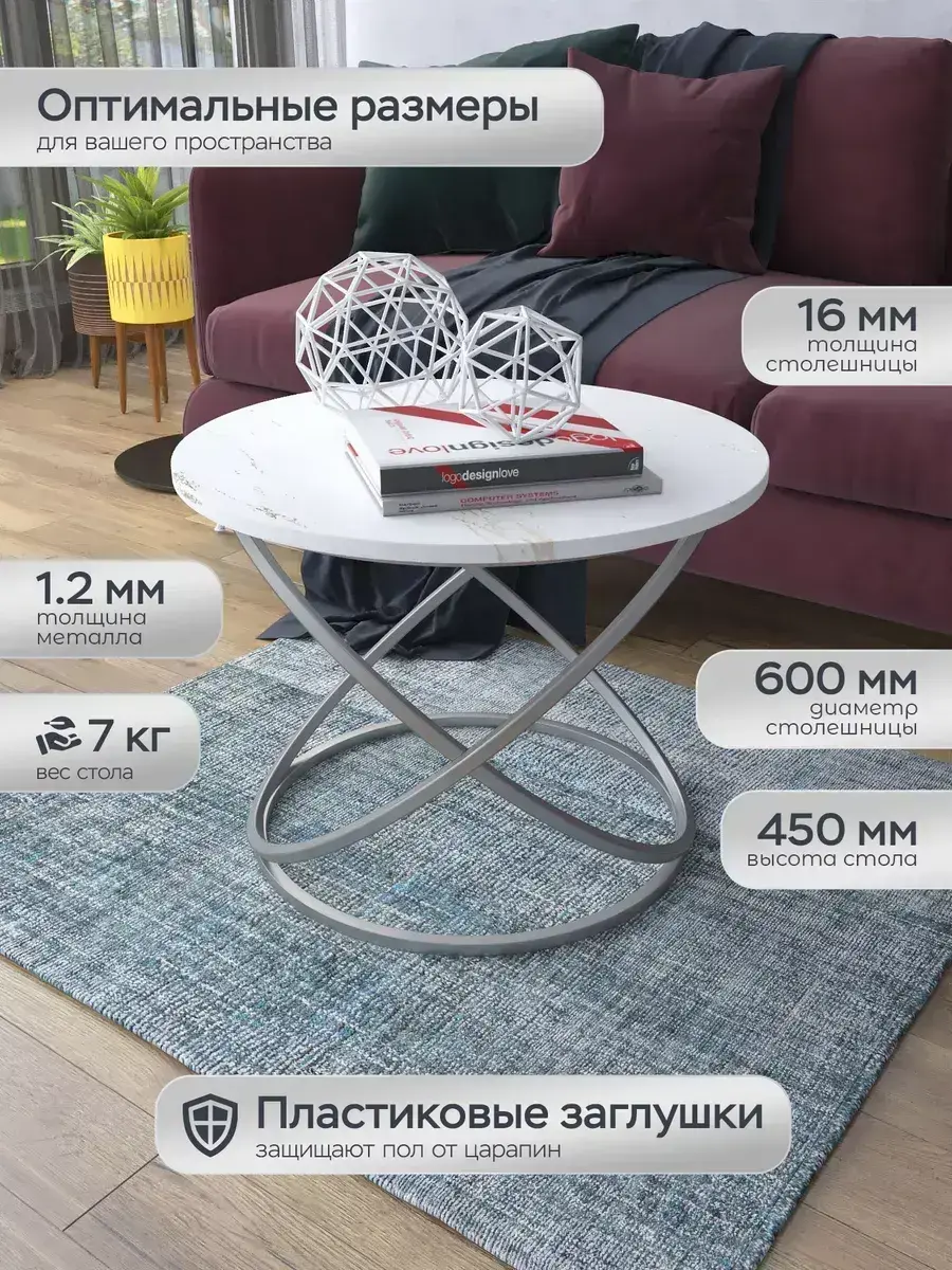 Журнальный стол "Инфинити" — это стильное и функциональное дополнение к вашему интерьеру. Его уникальный дизайн и высокое качество сразу привлекают внимание. Столешница влагостойкая, а основание покрыто прочной полимерно-порошковой краской. Благодаря этому он не только привлекательно выглядит, но и очень практичен. Конструкция столика надёжна, он выдерживает нагрузку на столешницу до 30 кг. Это позволяет разместить на нём различные предметы декора или напитки. Цвет основания: серебро, столешницы: мрамор золото белый матовый. Основание выполнено из квадратной профильной трубы 15х15 толщиной 1.2мм Этот журнальный столик удобен в использовании. Он не царапает пол и не шатается, обеспечивая дополнительный комфорт при эксплуатации. Производство в России гарантирует высокое качество товара и его соответствие всем стандартам. Кроме того, столик поставляется уже собранным. Вам не придётся тратить время и силы на его сборку. Просто распакуйте его и наслаждайтесь преимуществами этого прекрасного изделия. Круглый журнальный столик со столешницей под мрамор — это не просто мебель. Это настоящее произведение искусства, которое подчеркнёт ваш вкус и станет главным акцентом в вашем доме. Покупая этот столик, вы получаете не только функциональную мебель, но и предмет декора, который добавит шарма и уюта в ваше пространство. Не упустите возможность купить этот уникальный журнальный столик и создать уютный уголок в вашем доме, который будет радовать вас каждый день.