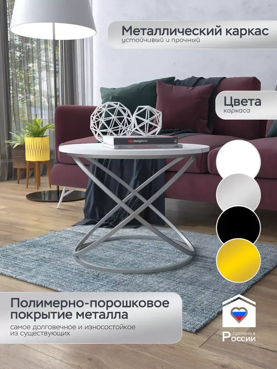 Журнальный стол "Инфинити" — это стильное и функциональное дополнение к вашему интерьеру. Его уникальный дизайн и высокое качество сразу привлекают внимание. Столешница влагостойкая, а основание покрыто прочной полимерно-порошковой краской. Благодаря этому он не только привлекательно выглядит, но и очень практичен. Конструкция столика надёжна, он выдерживает нагрузку на столешницу до 30 кг. Это позволяет разместить на нём различные предметы декора или напитки. Цвет основания: серебро, столешницы: мрамор белый матовый. Основание выполнено из квадратной профильной трубы 15х15 толщиной 1.2мм Этот журнальный столик удобен в использовании. Он не царапает пол и не шатается, обеспечивая дополнительный комфорт при эксплуатации. Производство в России гарантирует высокое качество товара и его соответствие всем стандартам. Кроме того, столик поставляется уже собранным. Вам не придётся тратить время и силы на его сборку. Просто распакуйте его и наслаждайтесь преимуществами этого прекрасного изделия. Круглый журнальный столик со столешницей под мрамор — это не просто мебель. Это настоящее произведение искусства, которое подчеркнёт ваш вкус и станет главным акцентом в вашем доме. Покупая этот столик, вы получаете не только функциональную мебель, но и предмет декора, который добавит шарма и уюта в ваше пространство. Не упустите возможность купить этот уникальный журнальный столик и создать уютный уголок в вашем доме, который будет радовать вас каждый день.