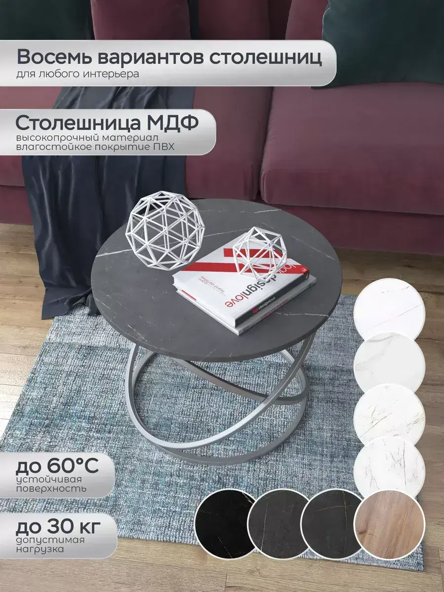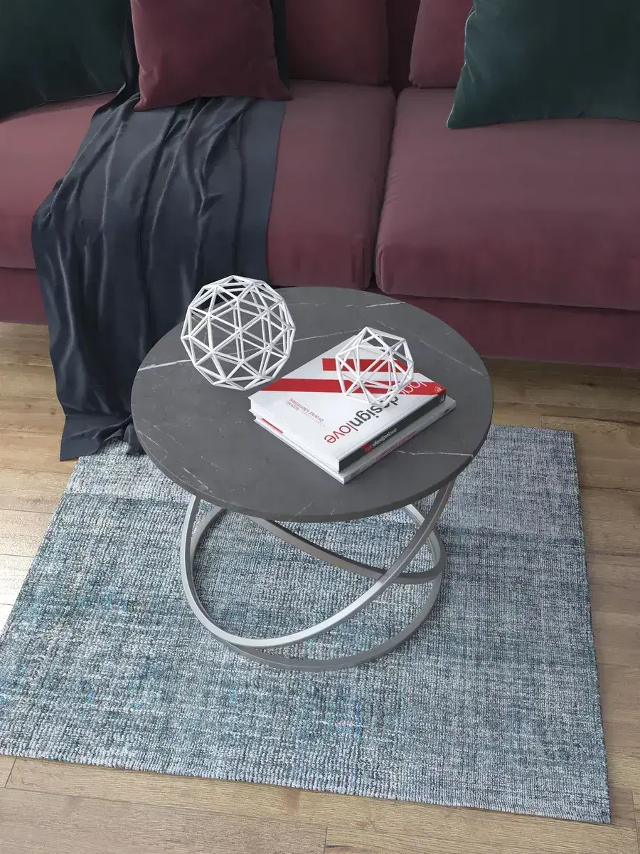 Журнальный стол "Инфинити" — это стильное и функциональное дополнение к вашему интерьеру. Его уникальный дизайн и высокое качество сразу привлекают внимание. Столешница влагостойкая, а основание покрыто прочной полимерно-порошковой краской. Благодаря этому он не только привлекательно выглядит, но и очень практичен. Конструкция столика надёжна, он выдерживает нагрузку на столешницу до 30 кг. Это позволяет разместить на нём различные предметы декора или напитки. Цвет основания: серебро, столешницы: мрамор черный матовый. Основание выполнено из квадратной профильной трубы 15х15 толщиной 1.2мм Этот журнальный столик удобен в использовании. Он не царапает пол и не шатается, обеспечивая дополнительный комфорт при эксплуатации. Производство в России гарантирует высокое качество товара и его соответствие всем стандартам. Кроме того, столик поставляется уже собранным. Вам не придётся тратить время и силы на его сборку. Просто распакуйте его и наслаждайтесь преимуществами этого прекрасного изделия. Круглый журнальный столик со столешницей под мрамор — это не просто мебель. Это настоящее произведение искусства, которое подчеркнёт ваш вкус и станет главным акцентом в вашем доме. Покупая этот столик, вы получаете не только функциональную мебель, но и предмет декора, который добавит шарма и уюта в ваше пространство. Не упустите возможность купить этот уникальный журнальный столик и создать уютный уголок в вашем доме, который будет радовать вас каждый день.