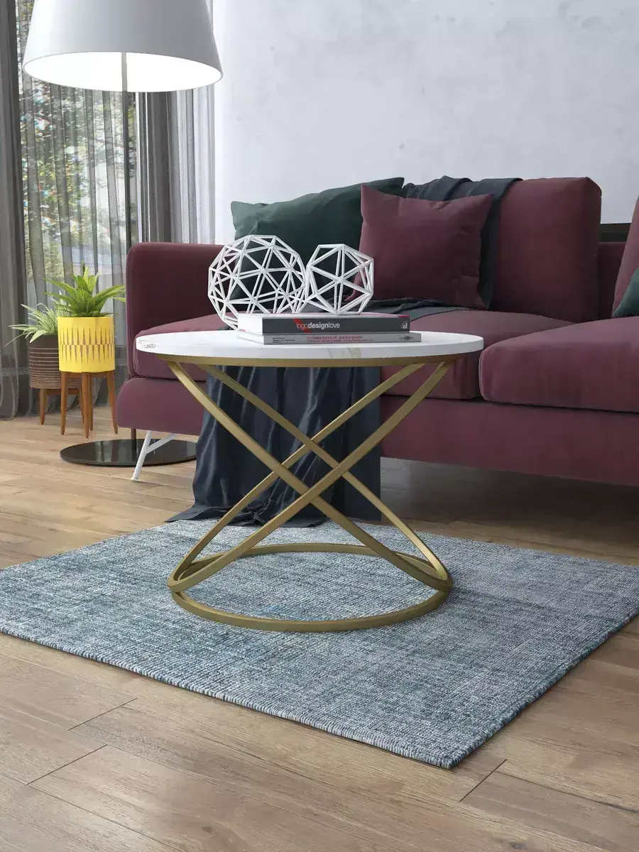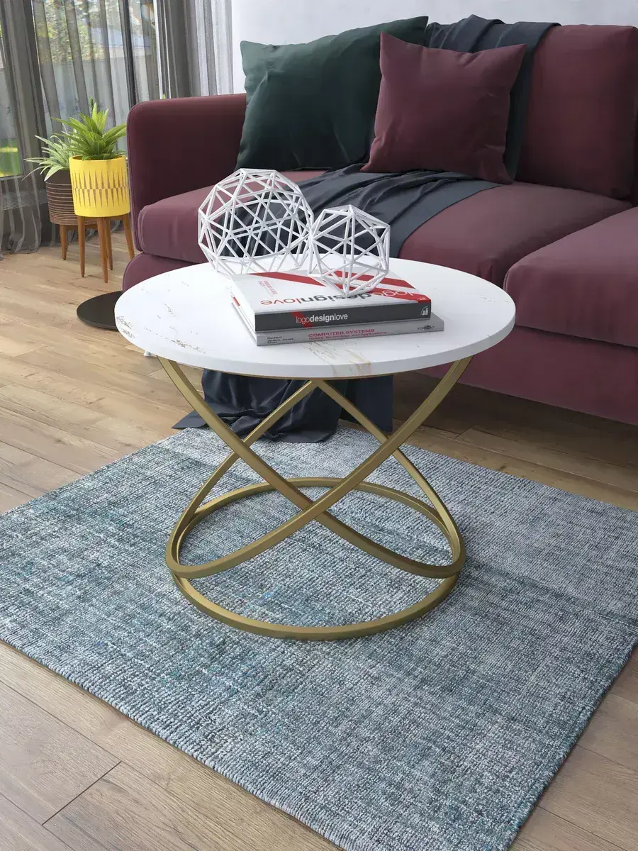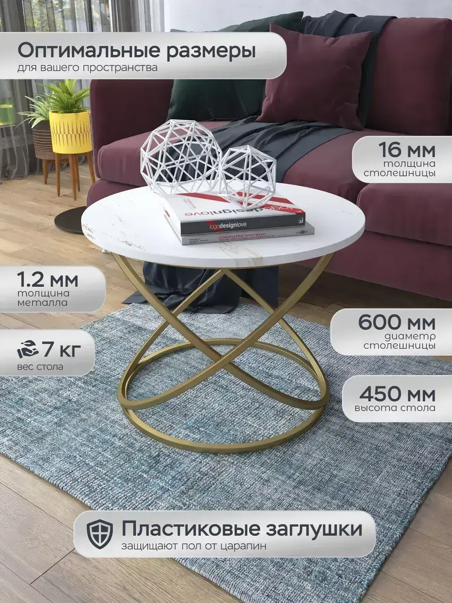 Журнальный стол "Инфинити" — это стильное и функциональное дополнение к вашему интерьеру. Его уникальный дизайн и высокое качество сразу привлекают внимание. Столешница влагостойкая, а основание покрыто прочной полимерно-порошковой краской. Благодаря этому он не только привлекательно выглядит, но и очень практичен. Конструкция столика надёжна, он выдерживает нагрузку на столешницу до 30 кг. Это позволяет разместить на нём различные предметы декора или напитки. Цвет основания: золото, столешницы: мрамор золото белый матовый. Основание выполнено из квадратной профильной трубы 15х15 толщиной 1.2мм Этот журнальный столик удобен в использовании. Он не царапает пол и не шатается, обеспечивая дополнительный комфорт при эксплуатации. Производство в России гарантирует высокое качество товара и его соответствие всем стандартам. Кроме того, столик поставляется уже собранным. Вам не придётся тратить время и силы на его сборку. Просто распакуйте его и наслаждайтесь преимуществами этого прекрасного изделия. Круглый журнальный столик со столешницей под мрамор — это не просто мебель. Это настоящее произведение искусства, которое подчеркнёт ваш вкус и станет главным акцентом в вашем доме. Покупая этот столик, вы получаете не только функциональную мебель, но и предмет декора, который добавит шарма и уюта в ваше пространство. Не упустите возможность купить этот уникальный журнальный столик и создать уютный уголок в вашем доме, который будет радовать вас каждый день.