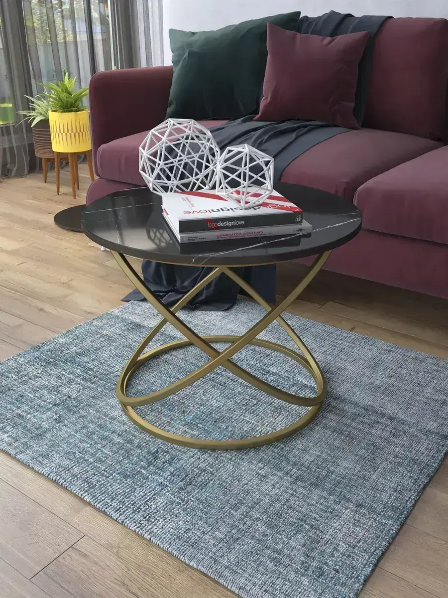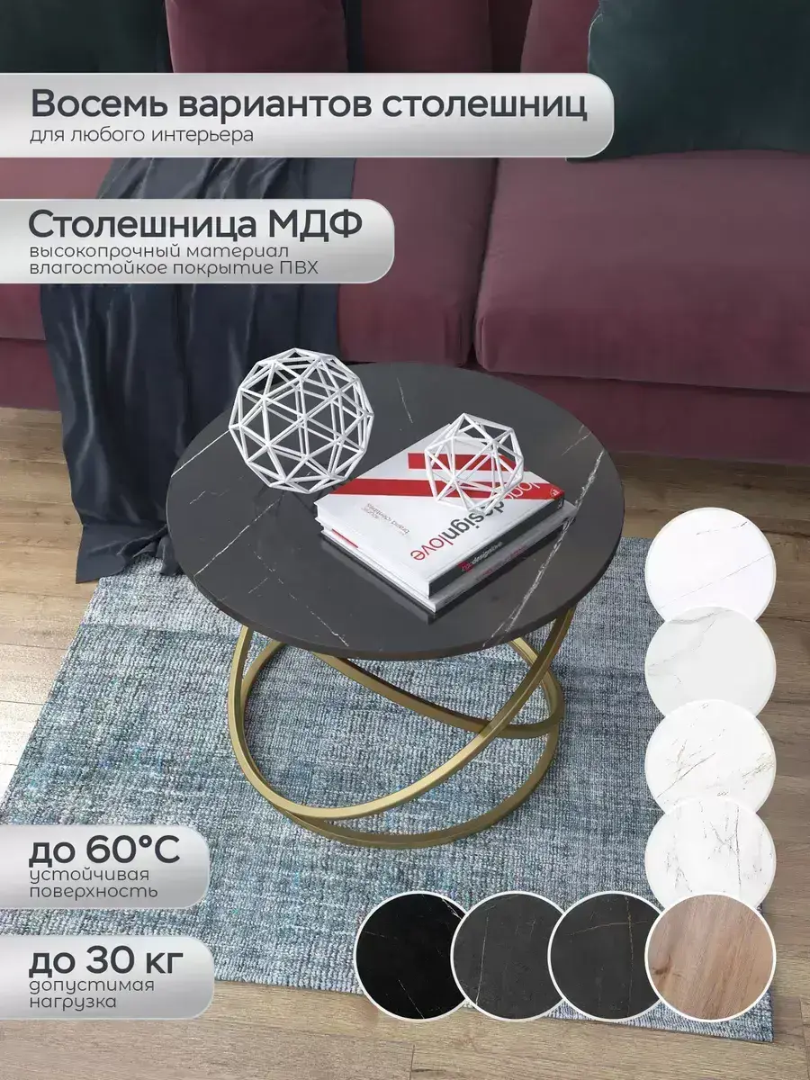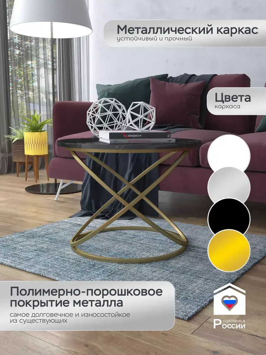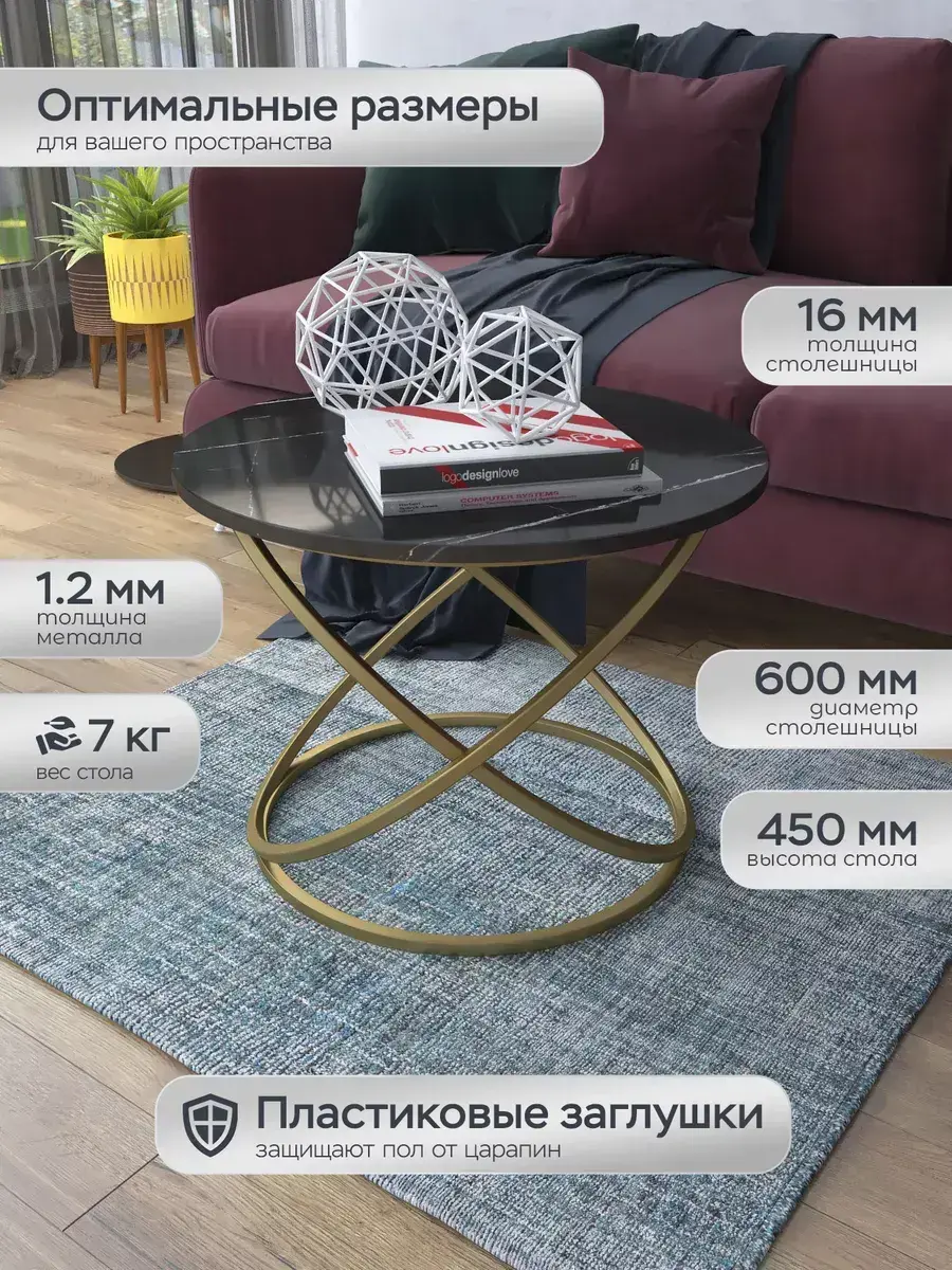 Журнальный стол "Инфинити" — это стильное и функциональное дополнение к вашему интерьеру. Его уникальный дизайн и высокое качество сразу привлекают внимание. Столешница влагостойкая, а основание покрыто прочной полимерно-порошковой краской. Благодаря этому он не только привлекательно выглядит, но и очень практичен. Конструкция столика надёжна, он выдерживает нагрузку на столешницу до 30 кг. Это позволяет разместить на нём различные предметы декора или напитки. Цвет основания: золото, столешницы: мрамор черный глянцевый. Основание выполнено из квадратной профильной трубы 15х15 толщиной 1.2мм Этот журнальный столик удобен в использовании. Он не царапает пол и не шатается, обеспечивая дополнительный комфорт при эксплуатации. Производство в России гарантирует высокое качество товара и его соответствие всем стандартам. Кроме того, столик поставляется уже собранным. Вам не придётся тратить время и силы на его сборку. Просто распакуйте его и наслаждайтесь преимуществами этого прекрасного изделия. Круглый журнальный столик со столешницей под мрамор — это не просто мебель. Это настоящее произведение искусства, которое подчеркнёт ваш вкус и станет главным акцентом в вашем доме. Покупая этот столик, вы получаете не только функциональную мебель, но и предмет декора, который добавит шарма и уюта в ваше пространство. Не упустите возможность купить этот уникальный журнальный столик и создать уютный уголок в вашем доме, который будет радовать вас каждый день.