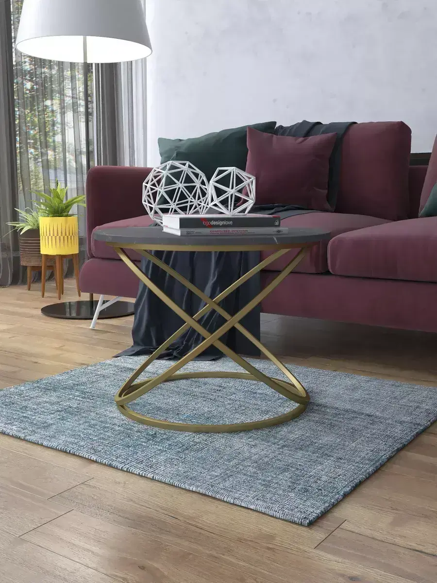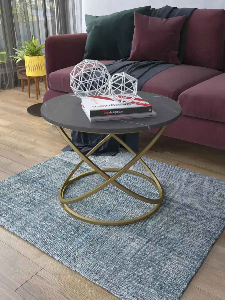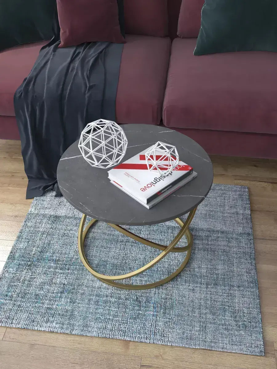 Журнальный стол "Инфинити" — это стильное и функциональное дополнение к вашему интерьеру. Его уникальный дизайн и высокое качество сразу привлекают внимание. Столешница влагостойкая, а основание покрыто прочной полимерно-порошковой краской. Благодаря этому он не только привлекательно выглядит, но и очень практичен. Конструкция столика надёжна, он выдерживает нагрузку на столешницу до 30 кг. Это позволяет разместить на нём различные предметы декора или напитки. Цвет основания: золото, столешницы: мрамор черный матовый. Основание выполнено из квадратной профильной трубы 15х15 толщиной 1.2мм Этот журнальный столик удобен в использовании. Он не царапает пол и не шатается, обеспечивая дополнительный комфорт при эксплуатации. Производство в России гарантирует высокое качество товара и его соответствие всем стандартам. Кроме того, столик поставляется уже собранным. Вам не придётся тратить время и силы на его сборку. Просто распакуйте его и наслаждайтесь преимуществами этого прекрасного изделия. Круглый журнальный столик со столешницей под мрамор — это не просто мебель. Это настоящее произведение искусства, которое подчеркнёт ваш вкус и станет главным акцентом в вашем доме. Покупая этот столик, вы получаете не только функциональную мебель, но и предмет декора, который добавит шарма и уюта в ваше пространство. Не упустите возможность купить этот уникальный журнальный столик и создать уютный уголок в вашем доме, который будет радовать вас каждый день.