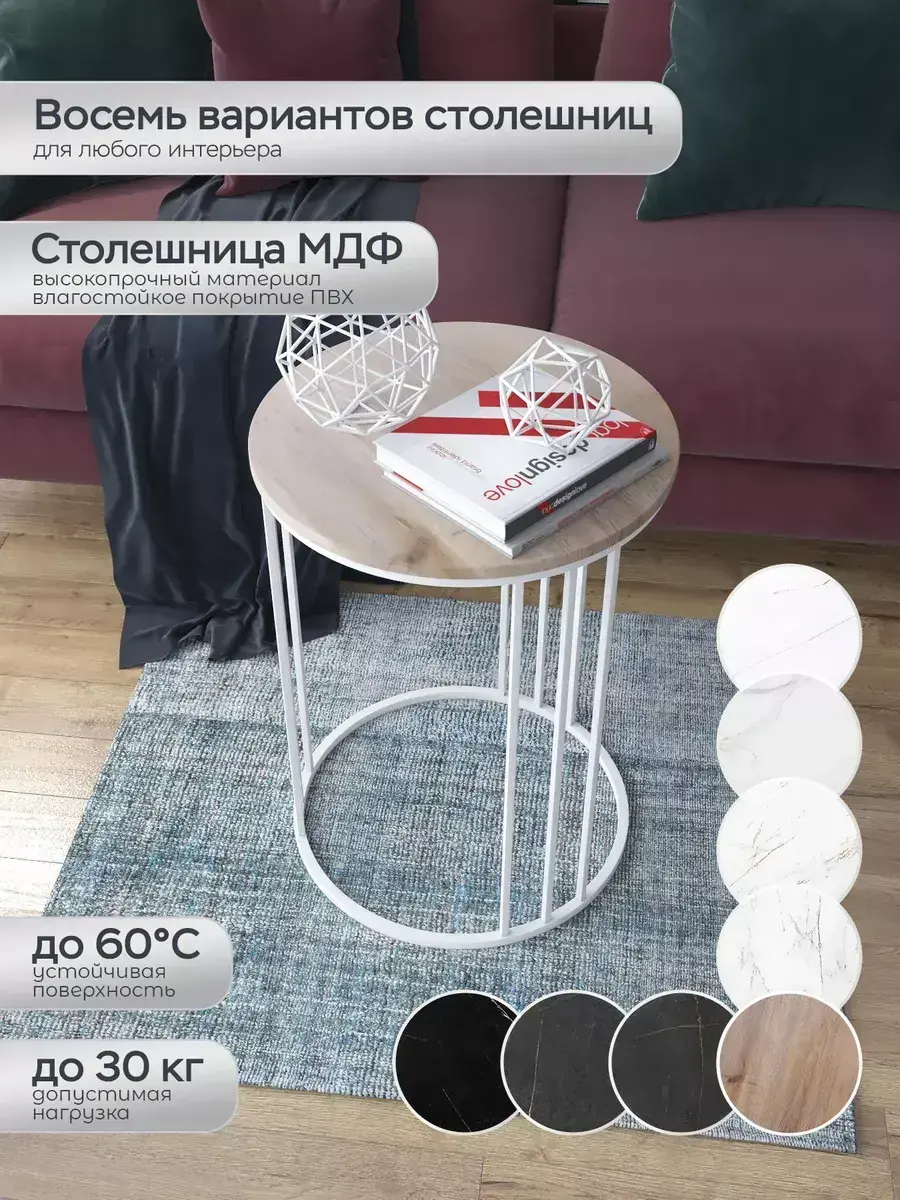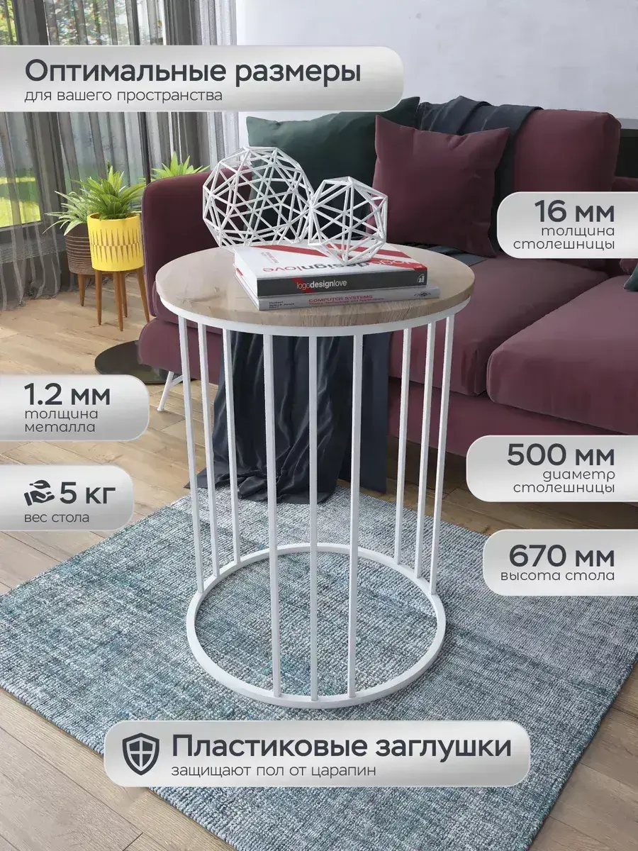 В мире, где каждый элемент интерьера способен рассказать свою историю, журнальный столик круглый "Трио" становится настоящим произведением искусства. Этот удивительный стол журнальный не просто функционален, он становится центром притяжения в вашей гостиной, создавая атмосферу уюта и стиля. Его элегантная форма и современный дизайн делают его идеальным дополнением для любой обстановки, будь то классический или модерн. Столешница из МДФ в пленке ПВХ, окрашенная в натуральный дуб, придаёт этому журнальному столу особую теплоту и привлекательность. С металлической конструкцией, этот столик журнальный обеспечивает прочность и долговечность, выдерживая нагрузку до 30 кг. Высота в 67 см и компактные размеры 50х50 см делают его идеальным для уютных встреч с друзьями за чашечкой кофе или для чтения любимой книги. Несмотря на отсутствие полок и колес, этот кофейный столик легко вписывается в любое пространство благодаря своему стильному белому основанию. При этом, он не требует сборки — просто разместите его в нужном месте, и он готов к использованию! Этот стол круглый станет не только элементом декора, но и практичным решением для вашего дома. Не упустите шанс добавить в свою жизнь этот изысканный столик прикроватный, который гармонично дополнит ваш интерьер. Пора сделать шаг навстречу стилю и комфорту — покупайте журнальный столик круглый "Трио" уже сегодня!