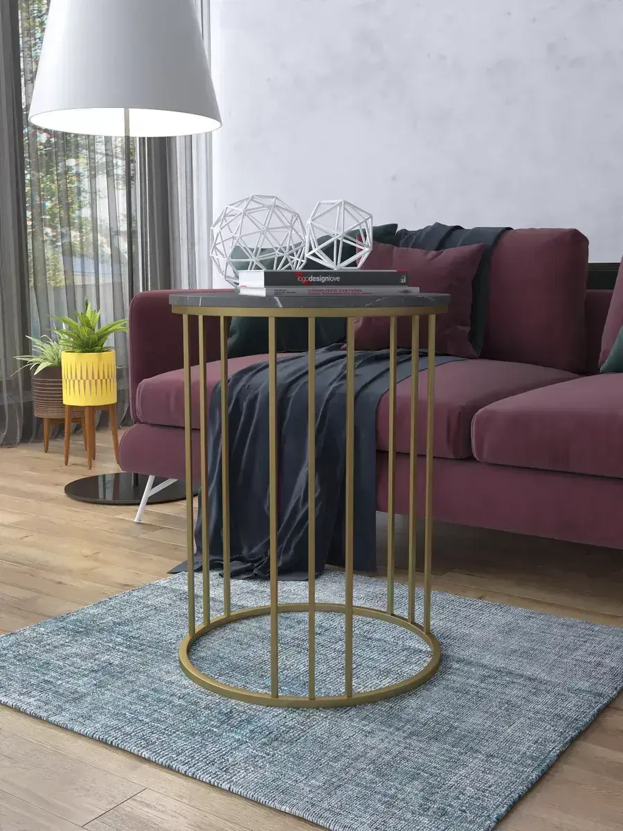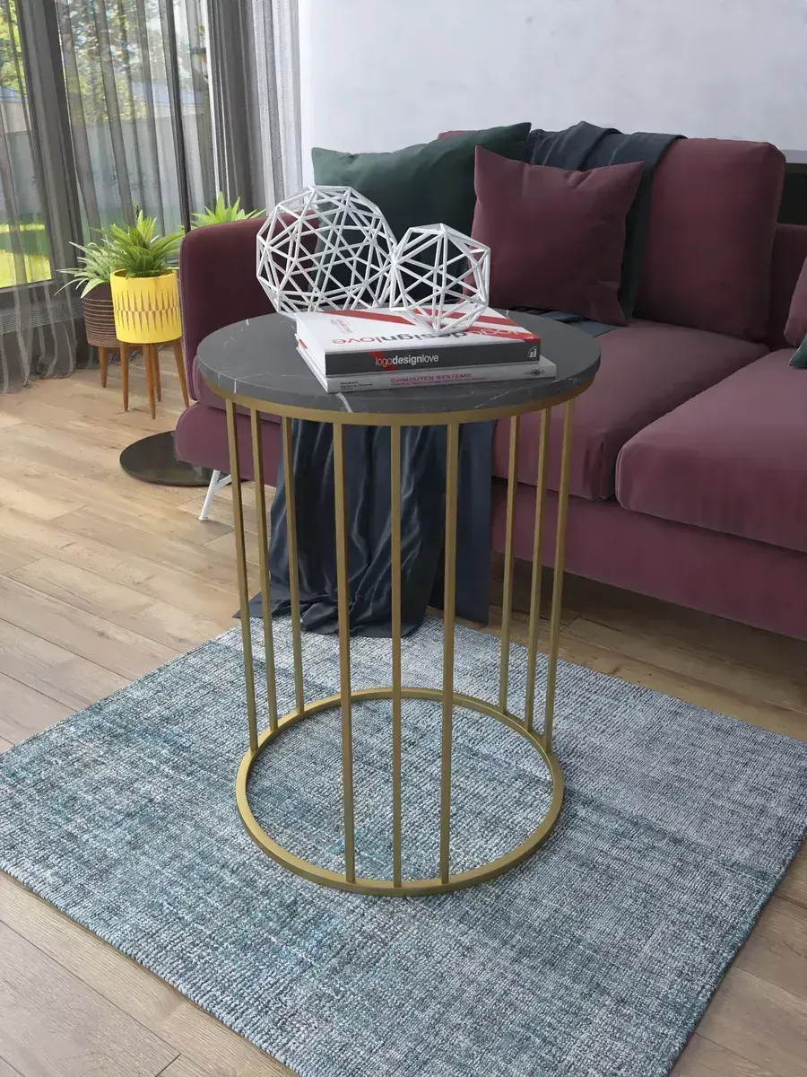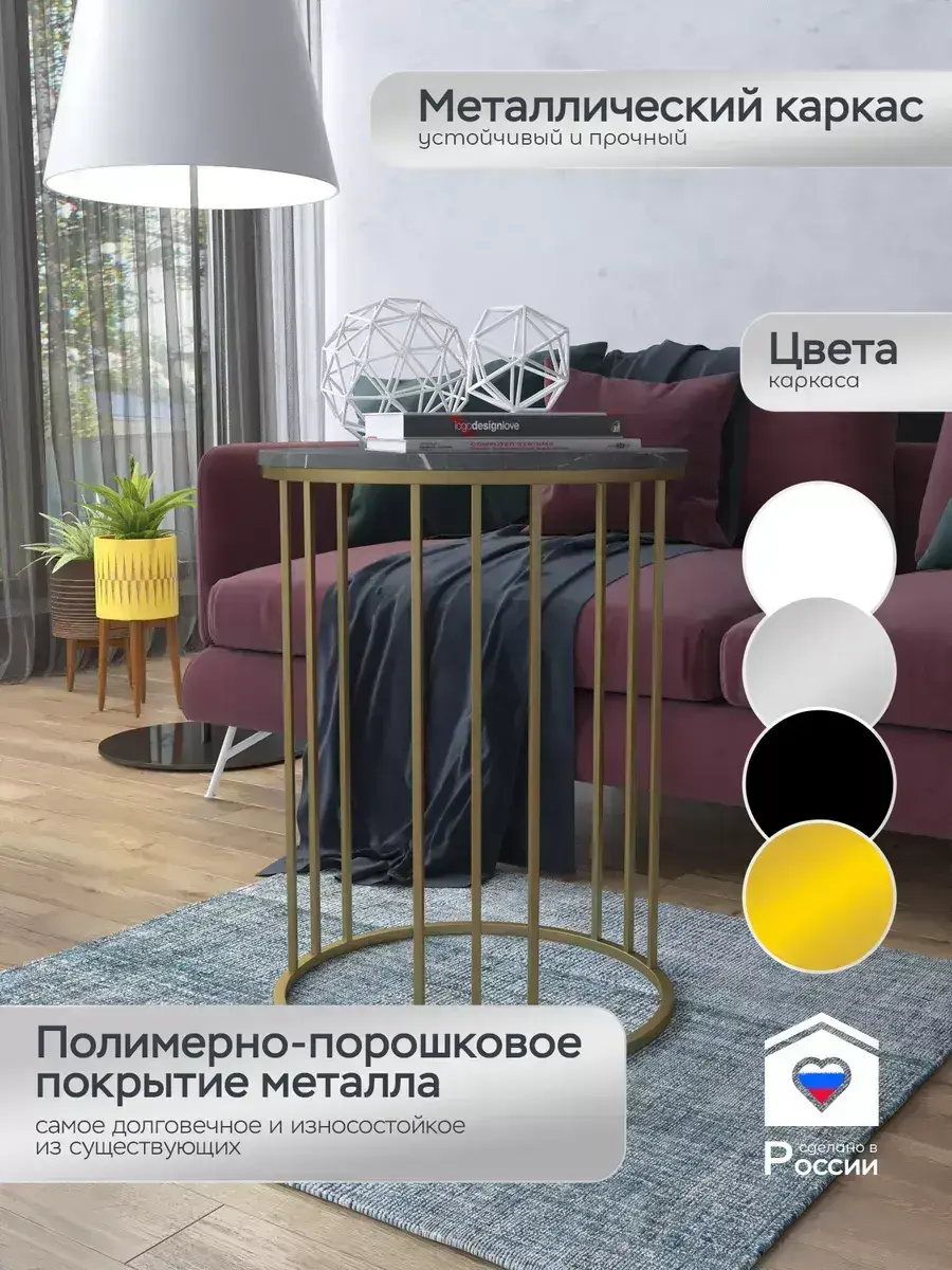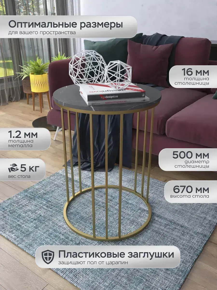 Журнальный стол "Трио" — это стильное и функциональное дополнение к вашему интерьеру. Его уникальный дизайн и высокое качество сразу привлекают внимание. Столешница влагостойкая, а основание покрыто прочной полимерно-порошковой краской. Благодаря этому он не только привлекательно выглядит, но и очень практичен. Конструкция столика надёжна, он выдерживает нагрузку на столешницу до 30 кг. Это позволяет разместить на нём различные предметы декора или напитки. Цвет основания: золото, столешницы: мрамор черный матовый. Основание выполнено из квадратной профильной трубы 15х15 толщиной 1.2мм Этот журнальный столик удобен в использовании. Он не царапает пол и не шатается, обеспечивая дополнительный комфорт при эксплуатации. Производство в России гарантирует высокое качество товара и его соответствие всем стандартам. Кроме того, столик поставляется уже собранным. Вам не придётся тратить время и силы на его сборку. Просто распакуйте его и наслаждайтесь преимуществами этого прекрасного изделия. Круглый журнальный столик со столешницей под мрамор — это не просто мебель. Это настоящее произведение искусства, которое подчеркнёт ваш вкус и станет главным акцентом в вашем доме. Покупая этот столик, вы получаете не только функциональную мебель, но и предмет декора, который добавит шарма и уюта в ваше пространство. Не упустите возможность купить этот уникальный журнальный столик и создать уютный уголок в вашем доме, который будет радовать вас каждый день.