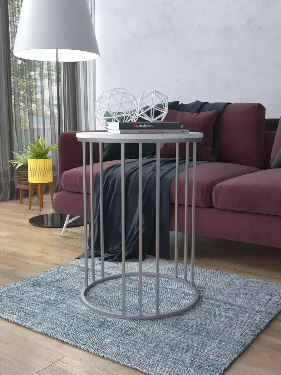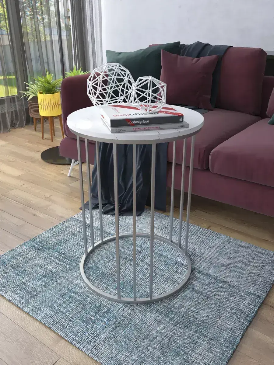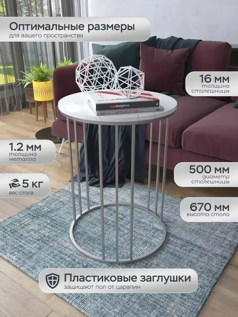 Журнальный стол "Трио" — это стильное и функциональное дополнение к вашему интерьеру. Его уникальный дизайн и высокое качество сразу привлекают внимание. Столешница влагостойкая, а основание покрыто прочной полимерно-порошковой краской. Благодаря этому он не только привлекательно выглядит, но и очень практичен. Конструкция столика надёжна, он выдерживает нагрузку на столешницу до 30 кг. Это позволяет разместить на нём различные предметы декора или напитки. Цвет основания: серебро, столешницы: мрамор серебро белый глянцевый. Основание выполнено из квадратной профильной трубы 15х15 толщиной 1.2мм Этот журнальный столик удобен в использовании. Он не царапает пол и не шатается, обеспечивая дополнительный комфорт при эксплуатации. Производство в России гарантирует высокое качество товара и его соответствие всем стандартам. Кроме того, столик поставляется уже собранным. Вам не придётся тратить время и силы на его сборку. Просто распакуйте его и наслаждайтесь преимуществами этого прекрасного изделия. Круглый журнальный столик со столешницей под мрамор — это не просто мебель. Это настоящее произведение искусства, которое подчеркнёт ваш вкус и станет главным акцентом в вашем доме. Покупая этот столик, вы получаете не только функциональную мебель, но и предмет декора, который добавит шарма и уюта в ваше пространство. Не упустите возможность купить этот уникальный журнальный столик и создать уютный уголок в вашем доме, который будет радовать вас каждый день.