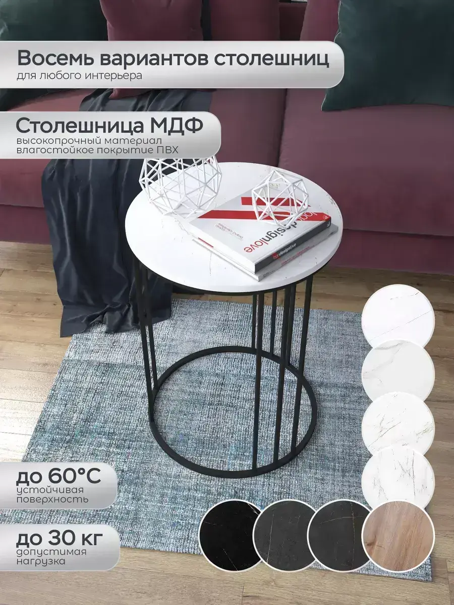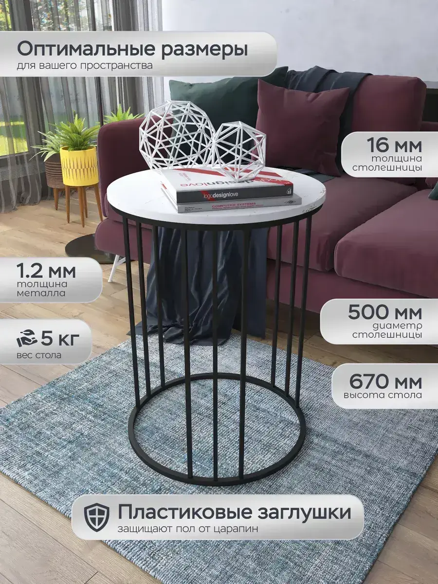 Журнальный стол "Трио" — это стильное и функциональное дополнение к вашему интерьеру. Его уникальный дизайн и высокое качество сразу привлекают внимание. Столешница влагостойкая, а основание покрыто прочной полимерно-порошковой краской. Благодаря этому он не только привлекательно выглядит, но и очень практичен. Конструкция столика надёжна, он выдерживает нагрузку на столешницу до 30 кг. Это позволяет разместить на нём различные предметы декора или напитки. Цвет основания: черный, столешницы: мрамор золото белый матовый. Основание выполнено из квадратной профильной трубы 15х15 толщиной 1.2мм Этот журнальный столик удобен в использовании. Он не царапает пол и не шатается, обеспечивая дополнительный комфорт при эксплуатации. Производство в России гарантирует высокое качество товара и его соответствие всем стандартам. Кроме того, столик поставляется уже собранным. Вам не придётся тратить время и силы на его сборку. Просто распакуйте его и наслаждайтесь преимуществами этого прекрасного изделия. Круглый журнальный столик со столешницей под мрамор — это не просто мебель. Это настоящее произведение искусства, которое подчеркнёт ваш вкус и станет главным акцентом в вашем доме. Покупая этот столик, вы получаете не только функциональную мебель, но и предмет декора, который добавит шарма и уюта в ваше пространство. Не упустите возможность купить этот уникальный журнальный столик и создать уютный уголок в вашем доме, который будет радовать вас каждый день.