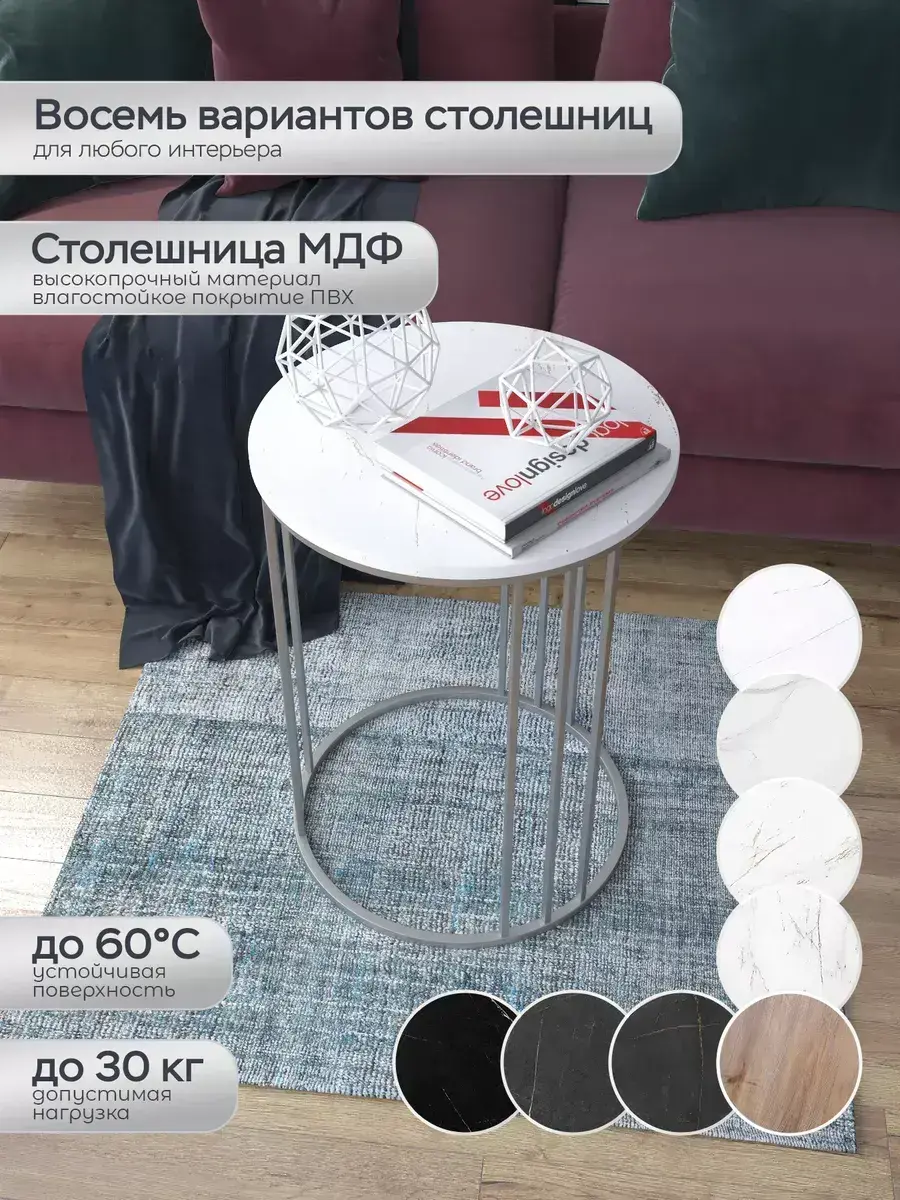 Журнальный стол "Трио" — это стильное и функциональное дополнение к вашему интерьеру. Его уникальный дизайн и высокое качество сразу привлекают внимание. Столешница влагостойкая, а основание покрыто прочной полимерно-порошковой краской. Благодаря этому он не только привлекательно выглядит, но и очень практичен. Конструкция столика надёжна, он выдерживает нагрузку на столешницу до 30 кг. Это позволяет разместить на нём различные предметы декора или напитки. Цвет основания: серебро, столешницы: мрамор золото белый матовый. Основание выполнено из квадратной профильной трубы 15х15 толщиной 1.2мм Этот журнальный столик удобен в использовании. Он не царапает пол и не шатается, обеспечивая дополнительный комфорт при эксплуатации. Производство в России гарантирует высокое качество товара и его соответствие всем стандартам. Кроме того, столик поставляется уже собранным. Вам не придётся тратить время и силы на его сборку. Просто распакуйте его и наслаждайтесь преимуществами этого прекрасного изделия. Круглый журнальный столик со столешницей под мрамор — это не просто мебель. Это настоящее произведение искусства, которое подчеркнёт ваш вкус и станет главным акцентом в вашем доме. Покупая этот столик, вы получаете не только функциональную мебель, но и предмет декора, который добавит шарма и уюта в ваше пространство. Не упустите возможность купить этот уникальный журнальный столик и создать уютный уголок в вашем доме, который будет радовать вас каждый день.