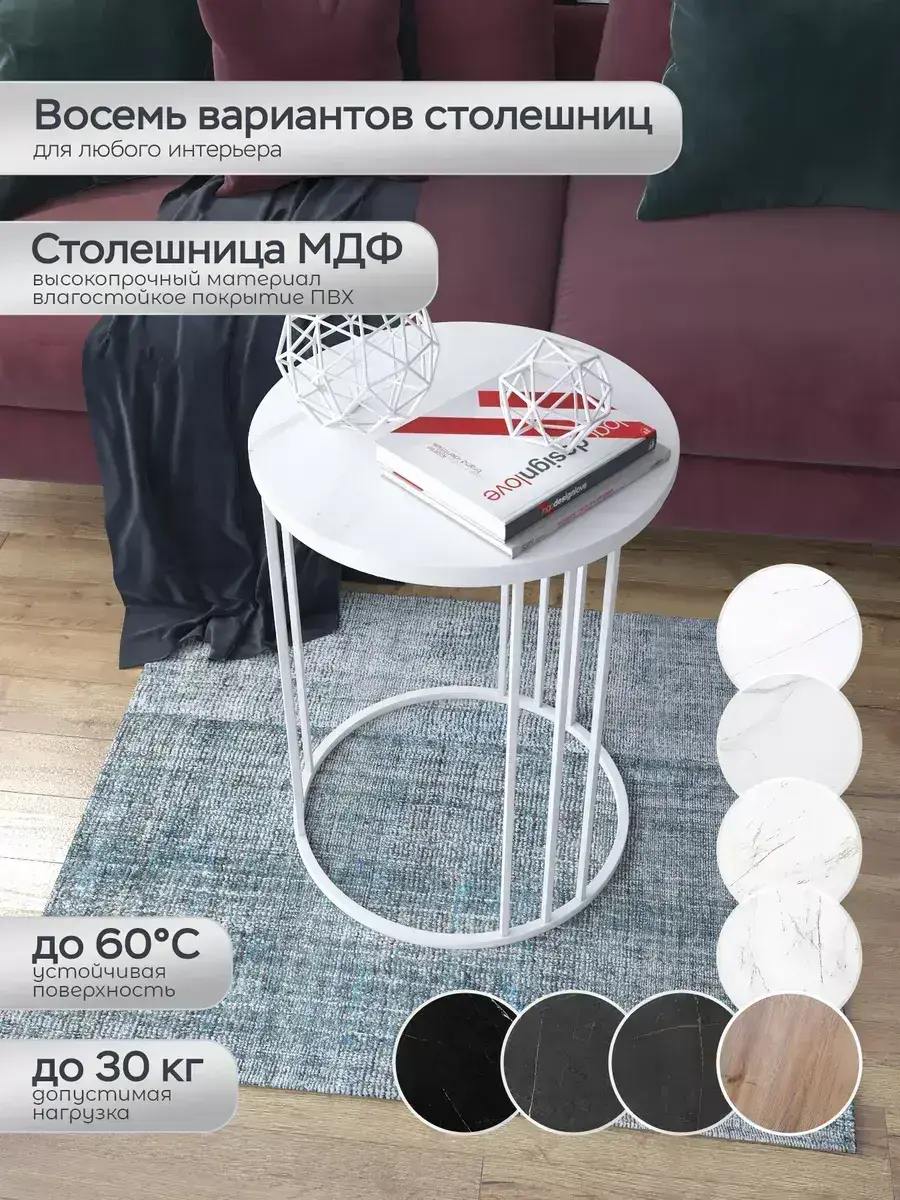 Журнальный стол "Трио" — это стильное и функциональное дополнение к вашему интерьеру. Его уникальный дизайн и высокое качество сразу привлекают внимание. Столешница влагостойкая, а основание покрыто прочной полимерно-порошковой краской. Благодаря этому он не только привлекательно выглядит, но и очень практичен. Конструкция столика надёжна, он выдерживает нагрузку на столешницу до 30 кг. Это позволяет разместить на нём различные предметы декора или напитки. Цвет основания: белый, столешницы: мрамор белый матовый. Основание выполнено из квадратной профильной трубы 15х15 толщиной 1.2мм Этот журнальный столик удобен в использовании. Он не царапает пол и не шатается, обеспечивая дополнительный комфорт при эксплуатации. Производство в России гарантирует высокое качество товара и его соответствие всем стандартам. Кроме того, столик поставляется уже собранным. Вам не придётся тратить время и силы на его сборку. Просто распакуйте его и наслаждайтесь преимуществами этого прекрасного изделия. Круглый журнальный столик со столешницей под мрамор — это не просто мебель. Это настоящее произведение искусства, которое подчеркнёт ваш вкус и станет главным акцентом в вашем доме. Покупая этот столик, вы получаете не только функциональную мебель, но и предмет декора, который добавит шарма и уюта в ваше пространство. Не упустите возможность купить этот уникальный журнальный столик и создать уютный уголок в вашем доме, который будет радовать вас каждый день.