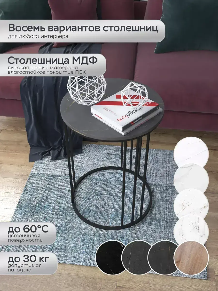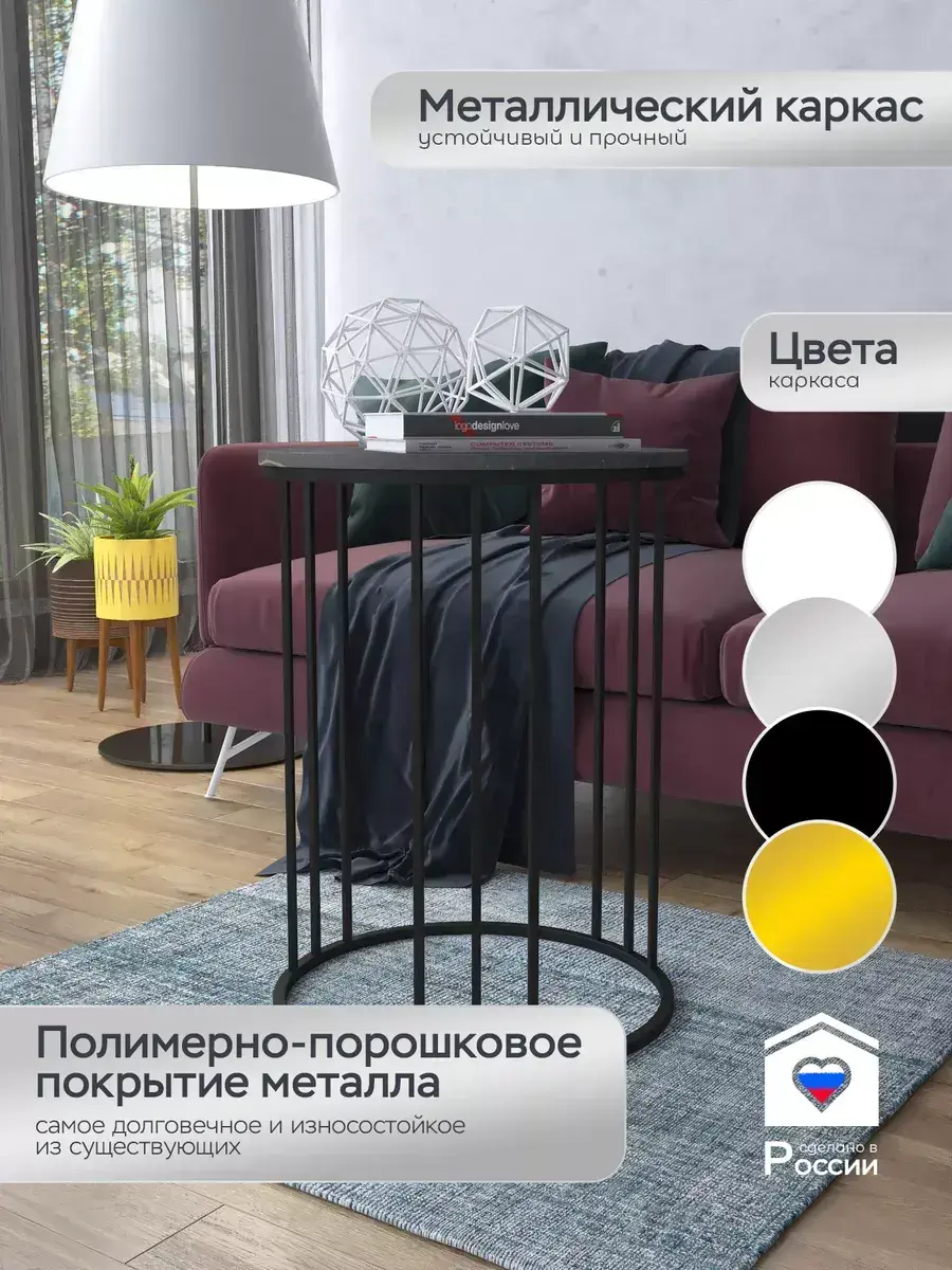 Журнальный стол "Трио" — это стильное и функциональное дополнение к вашему интерьеру. Его уникальный дизайн и высокое качество сразу привлекают внимание. Столешница влагостойкая, а основание покрыто прочной полимерно-порошковой краской. Благодаря этому он не только привлекательно выглядит, но и очень практичен. Конструкция столика надёжна, он выдерживает нагрузку на столешницу до 30 кг. Это позволяет разместить на нём различные предметы декора или напитки. Цвет основания: черный, столешницы: мрамор золото черный матовый. Основание выполнено из квадратной профильной трубы 15х15 толщиной 1.2мм Этот журнальный столик удобен в использовании. Он не царапает пол и не шатается, обеспечивая дополнительный комфорт при эксплуатации. Производство в России гарантирует высокое качество товара и его соответствие всем стандартам. Кроме того, столик поставляется уже собранным. Вам не придётся тратить время и силы на его сборку. Просто распакуйте его и наслаждайтесь преимуществами этого прекрасного изделия. Круглый журнальный столик со столешницей под мрамор — это не просто мебель. Это настоящее произведение искусства, которое подчеркнёт ваш вкус и станет главным акцентом в вашем доме. Покупая этот столик, вы получаете не только функциональную мебель, но и предмет декора, который добавит шарма и уюта в ваше пространство. Не упустите возможность купить этот уникальный журнальный столик и создать уютный уголок в вашем доме, который будет радовать вас каждый день.