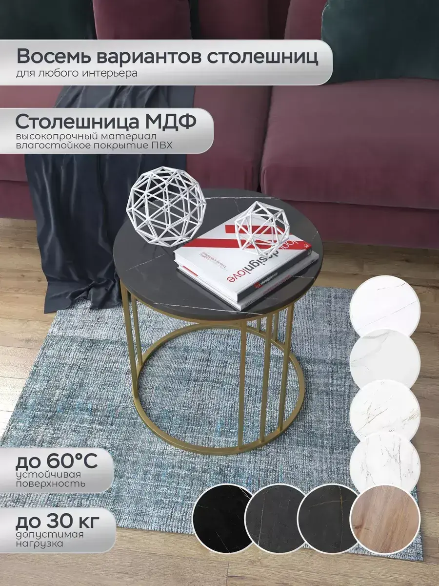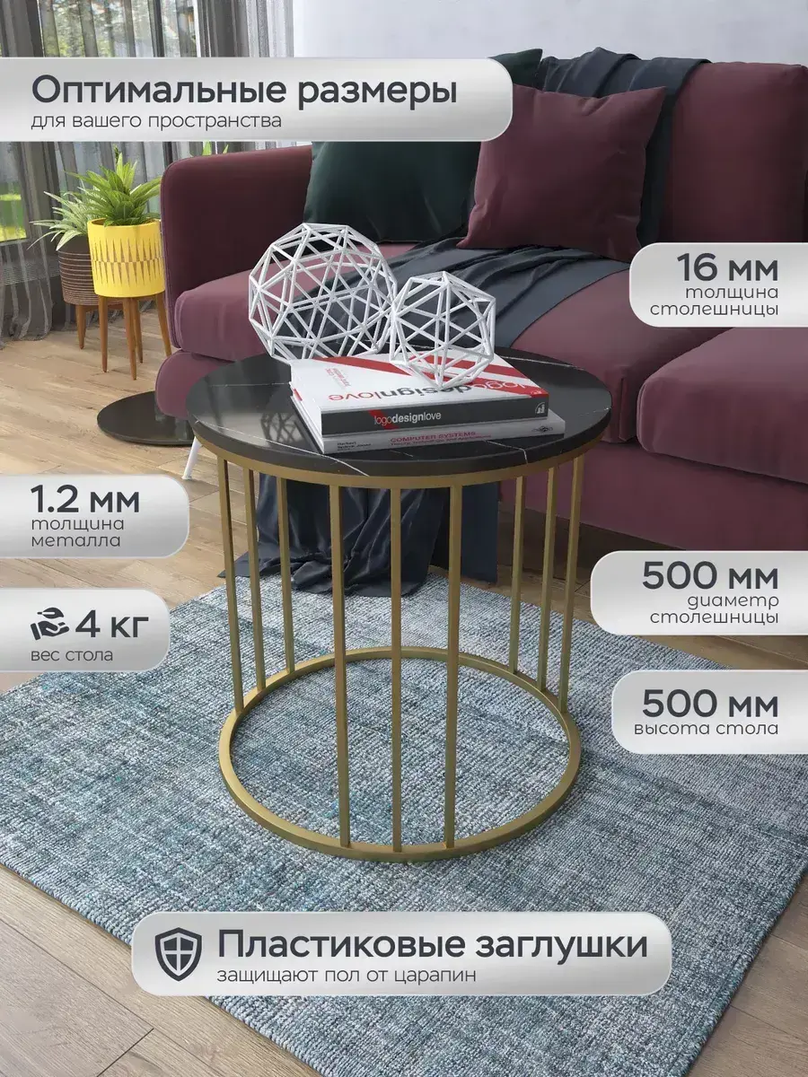 Журнальный стол "Трио малый" — это стильное и функциональное дополнение к вашему интерьеру. Его уникальный дизайн и высокое качество сразу привлекают внимание. Столешница влагостойкая, а основание покрыто прочной полимерно-порошковой краской. Благодаря этому он не только привлекательно выглядит, но и очень практичен. Конструкция столика надёжна, он выдерживает нагрузку на столешницу до 30 кг. Это позволяет разместить на нём различные предметы декора или напитки. Цвет основания: золото, столешницы: мрамор черный глянцевый. Основание выполнено из квадратной профильной трубы 15х15 толщиной 1.2мм Этот журнальный столик удобен в использовании. Он не царапает пол и не шатается, обеспечивая дополнительный комфорт при эксплуатации. Производство в России гарантирует высокое качество товара и его соответствие всем стандартам. Кроме того, столик поставляется уже собранным. Вам не придётся тратить время и силы на его сборку. Просто распакуйте его и наслаждайтесь преимуществами этого прекрасного изделия. Круглый журнальный столик со столешницей под мрамор — это не просто мебель. Это настоящее произведение искусства, которое подчеркнёт ваш вкус и станет главным акцентом в вашем доме. Покупая этот столик, вы получаете не только функциональную мебель, но и предмет декора, который добавит шарма и уюта в ваше пространство. Не упустите возможность купить этот уникальный журнальный столик и создать уютный уголок в вашем доме, который будет радовать вас каждый день.
