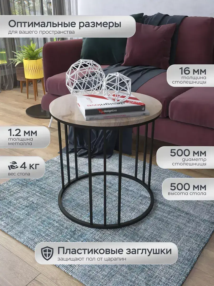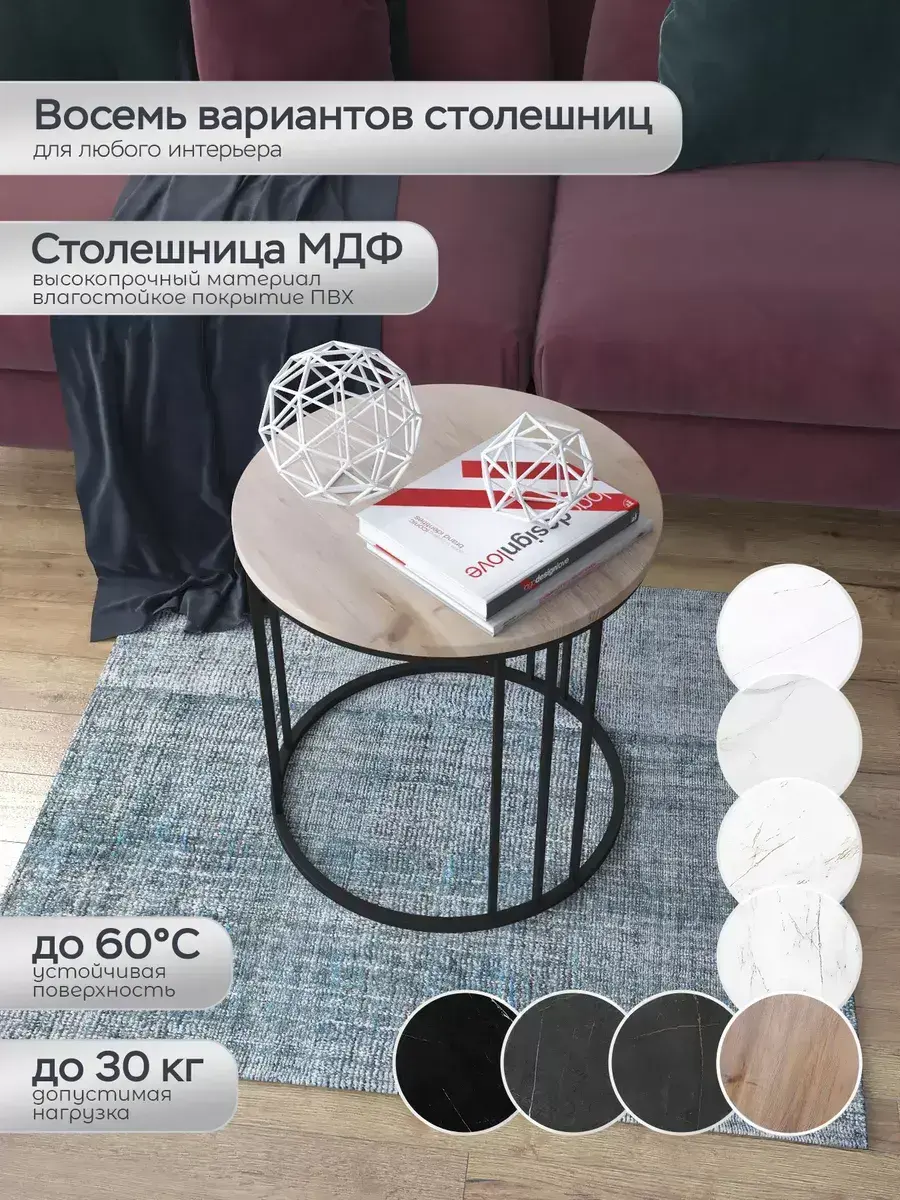 Журнальный стол "Трио малый" — это стильное и функциональное дополнение к вашему интерьеру. Его уникальный дизайн и высокое качество сразу привлекают внимание. Столешница влагостойкая, а основание покрыто прочной полимерно-порошковой краской. Благодаря этому он не только привлекательно выглядит, но и очень практичен. Конструкция столика надёжна, он выдерживает нагрузку на столешницу до 30 кг. Это позволяет разместить на нём различные предметы декора или напитки. Цвет основания: черный, столешницы: дуб натуральный. Основание выполнено из квадратной профильной трубы 15х15 толщиной 1.2мм Этот журнальный столик удобен в использовании. Он не царапает пол и не шатается, обеспечивая дополнительный комфорт при эксплуатации. Производство в России гарантирует высокое качество товара и его соответствие всем стандартам. Кроме того, столик поставляется уже собранным. Вам не придётся тратить время и силы на его сборку. Просто распакуйте его и наслаждайтесь преимуществами этого прекрасного изделия. Круглый журнальный столик со столешницей под мрамор — это не просто мебель. Это настоящее произведение искусства, которое подчеркнёт ваш вкус и станет главным акцентом в вашем доме. Покупая этот столик, вы получаете не только функциональную мебель, но и предмет декора, который добавит шарма и уюта в ваше пространство. Не упустите возможность купить этот уникальный журнальный столик и создать уютный уголок в вашем доме, который будет радовать вас каждый день.