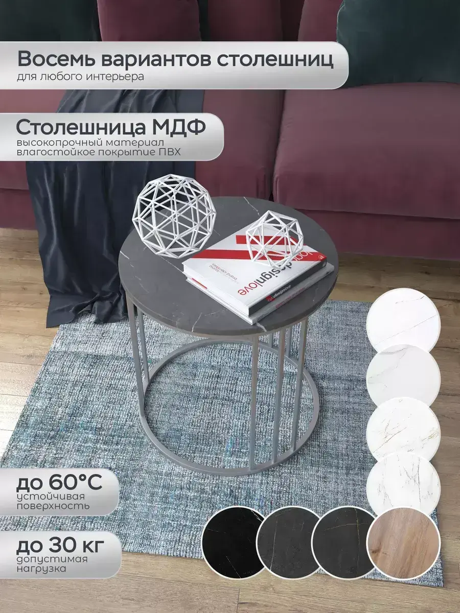 Журнальный стол "Трио малый" — это стильное и функциональное дополнение к вашему интерьеру. Его уникальный дизайн и высокое качество сразу привлекают внимание. Столешница влагостойкая, а основание покрыто прочной полимерно-порошковой краской. Благодаря этому он не только привлекательно выглядит, но и очень практичен. Конструкция столика надёжна, он выдерживает нагрузку на столешницу до 30 кг. Это позволяет разместить на нём различные предметы декора или напитки. Цвет основания: серебро, столешницы: мрамор черный матовый. Основание выполнено из квадратной профильной трубы 15х15 толщиной 1.2мм Этот журнальный столик удобен в использовании. Он не царапает пол и не шатается, обеспечивая дополнительный комфорт при эксплуатации. Производство в России гарантирует высокое качество товара и его соответствие всем стандартам. Кроме того, столик поставляется уже собранным. Вам не придётся тратить время и силы на его сборку. Просто распакуйте его и наслаждайтесь преимуществами этого прекрасного изделия. Круглый журнальный столик со столешницей под мрамор — это не просто мебель. Это настоящее произведение искусства, которое подчеркнёт ваш вкус и станет главным акцентом в вашем доме. Покупая этот столик, вы получаете не только функциональную мебель, но и предмет декора, который добавит шарма и уюта в ваше пространство. Не упустите возможность купить этот уникальный журнальный столик и создать уютный уголок в вашем доме, который будет радовать вас каждый день.