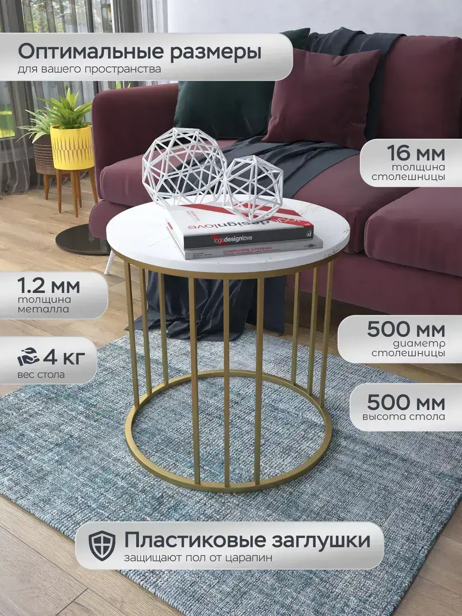 Журнальный стол "Трио малый" — это стильное и функциональное дополнение к вашему интерьеру. Его уникальный дизайн и высокое качество сразу привлекают внимание. Столешница влагостойкая, а основание покрыто прочной полимерно-порошковой краской. Благодаря этому он не только привлекательно выглядит, но и очень практичен. Конструкция столика надёжна, он выдерживает нагрузку на столешницу до 30 кг. Это позволяет разместить на нём различные предметы декора или напитки. Цвет основания: золото, столешницы: мрамор золото белый матовый. Основание выполнено из квадратной профильной трубы 15х15 толщиной 1.2мм Этот журнальный столик удобен в использовании. Он не царапает пол и не шатается, обеспечивая дополнительный комфорт при эксплуатации. Производство в России гарантирует высокое качество товара и его соответствие всем стандартам. Кроме того, столик поставляется уже собранным. Вам не придётся тратить время и силы на его сборку. Просто распакуйте его и наслаждайтесь преимуществами этого прекрасного изделия. Круглый журнальный столик со столешницей под мрамор — это не просто мебель. Это настоящее произведение искусства, которое подчеркнёт ваш вкус и станет главным акцентом в вашем доме. Покупая этот столик, вы получаете не только функциональную мебель, но и предмет декора, который добавит шарма и уюта в ваше пространство. Не упустите возможность купить этот уникальный журнальный столик и создать уютный уголок в вашем доме, который будет радовать вас каждый день.