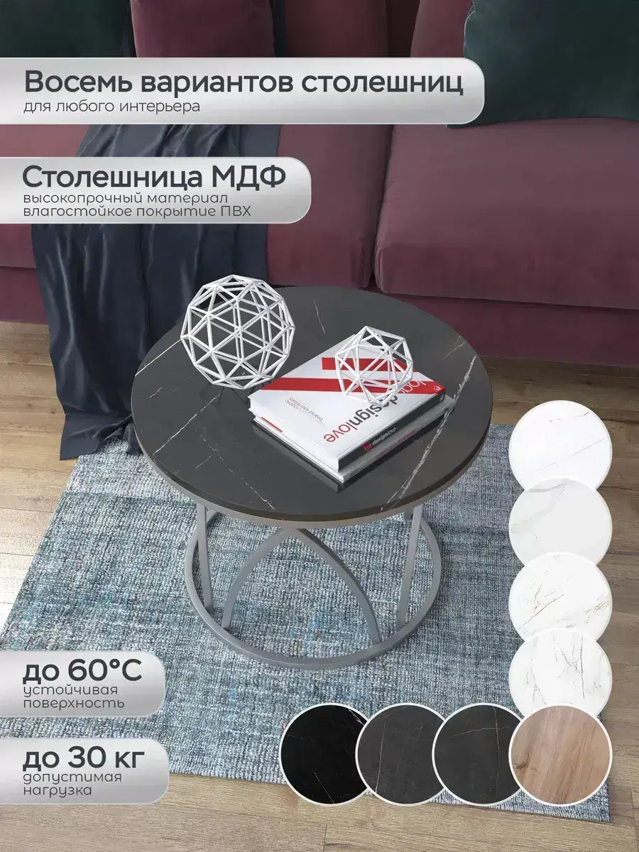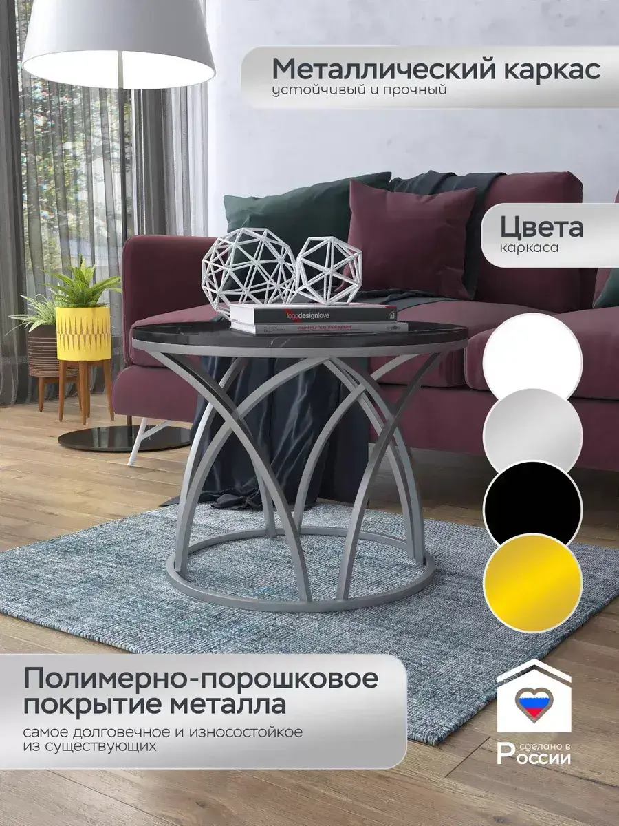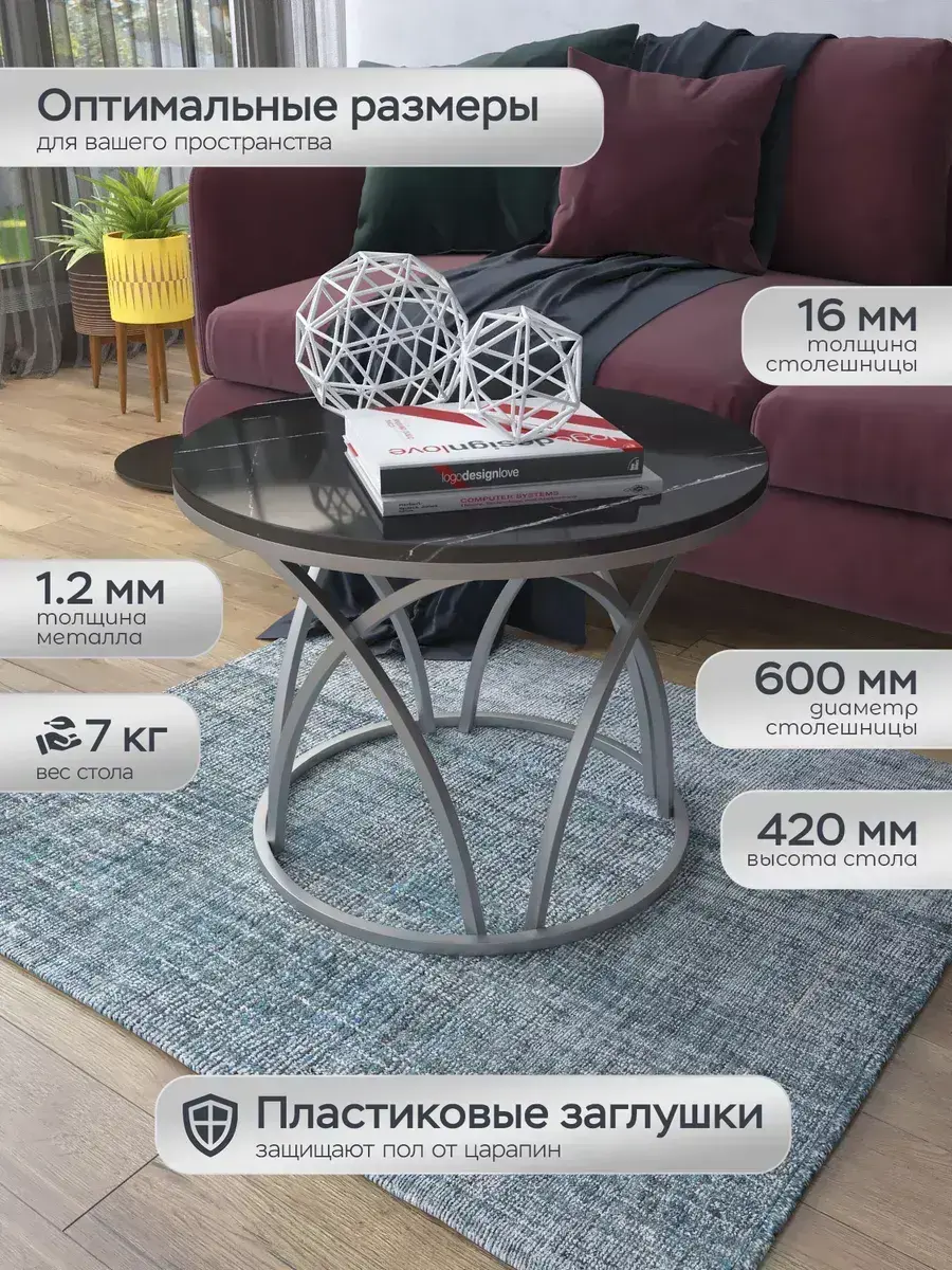 Журнальный стол "Тюльпан" — это стильное и функциональное дополнение к вашему интерьеру. Его уникальный дизайн и высокое качество сразу привлекают внимание. Столешница влагостойкая, а основание покрыто прочной полимерно-порошковой краской. Благодаря этому он не только привлекательно выглядит, но и очень практичен. Конструкция столика надёжна, он выдерживает нагрузку на столешницу до 30 кг. Это позволяет разместить на нём различные предметы декора или напитки. Цвет основания: серебро, столешницы: мрамор черный глянцевый. Основание выполнено из квадратной профильной трубы 15х15 толщиной 1.2мм Этот журнальный столик удобен в использовании. Он не царапает пол и не шатается, обеспечивая дополнительный комфорт при эксплуатации. Производство в России гарантирует высокое качество товара и его соответствие всем стандартам. Кроме того, столик поставляется уже собранным. Вам не придётся тратить время и силы на его сборку. Просто распакуйте его и наслаждайтесь преимуществами этого прекрасного изделия. Круглый журнальный столик со столешницей под мрамор — это не просто мебель. Это настоящее произведение искусства, которое подчеркнёт ваш вкус и станет главным акцентом в вашем доме. Покупая этот столик, вы получаете не только функциональную мебель, но и предмет декора, который добавит шарма и уюта в ваше пространство. Не упустите возможность купить этот уникальный журнальный столик и создать уютный уголок в вашем доме, который будет радовать вас каждый день.