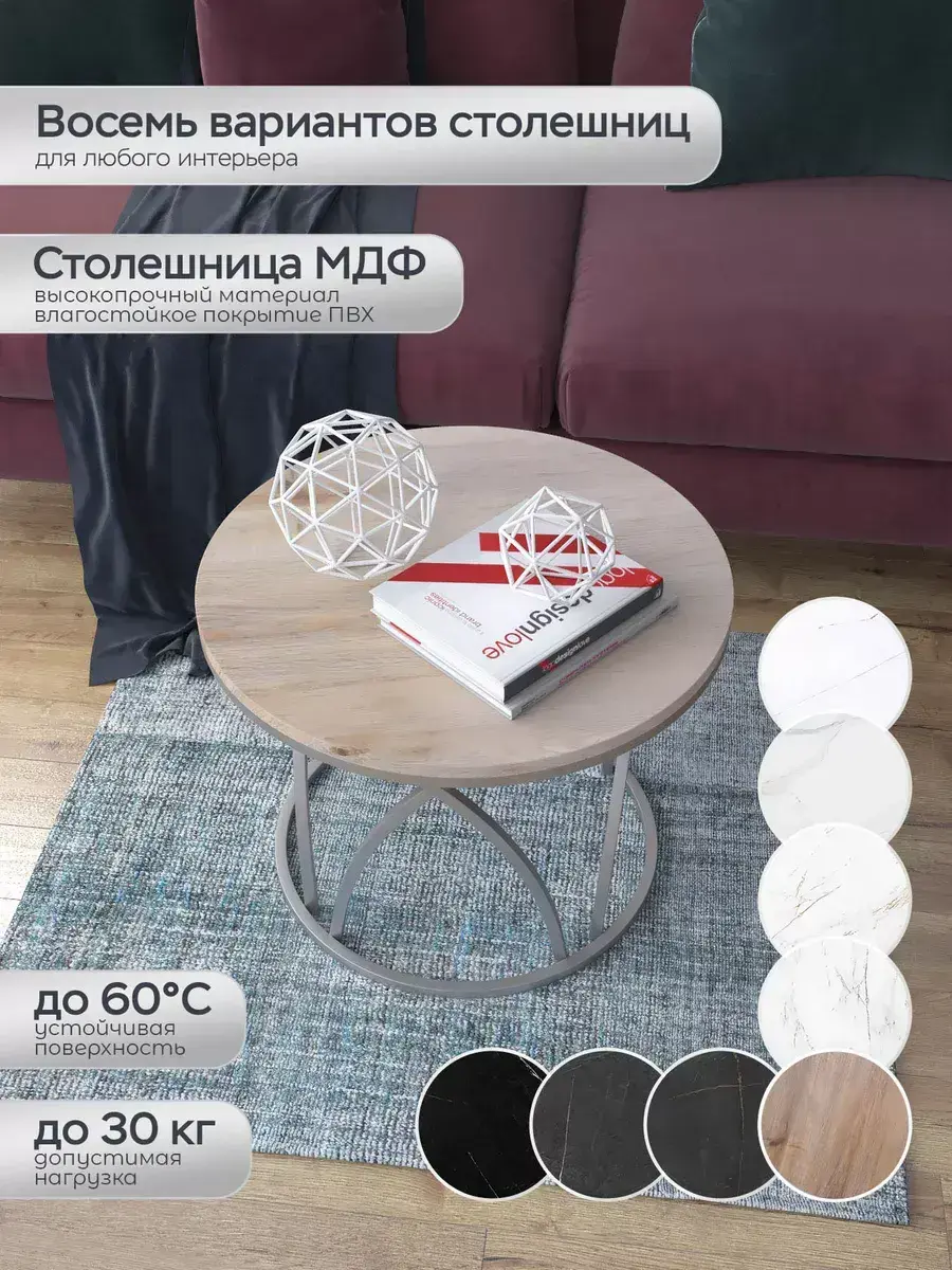 Журнальный стол "Тюльпан" — это стильное и функциональное дополнение к вашему интерьеру. Его уникальный дизайн и высокое качество сразу привлекают внимание. Столешница влагостойкая, а основание покрыто прочной полимерно-порошковой краской. Благодаря этому он не только привлекательно выглядит, но и очень практичен. Конструкция столика надёжна, он выдерживает нагрузку на столешницу до 30 кг. Это позволяет разместить на нём различные предметы декора или напитки. Цвет основания: серебро, столешницы: дуб натуральный. Основание выполнено из квадратной профильной трубы 15х15 толщиной 1.2мм Этот журнальный столик удобен в использовании. Он не царапает пол и не шатается, обеспечивая дополнительный комфорт при эксплуатации. Производство в России гарантирует высокое качество товара и его соответствие всем стандартам. Кроме того, столик поставляется уже собранным. Вам не придётся тратить время и силы на его сборку. Просто распакуйте его и наслаждайтесь преимуществами этого прекрасного изделия. Круглый журнальный столик со столешницей под мрамор — это не просто мебель. Это настоящее произведение искусства, которое подчеркнёт ваш вкус и станет главным акцентом в вашем доме. Покупая этот столик, вы получаете не только функциональную мебель, но и предмет декора, который добавит шарма и уюта в ваше пространство. Не упустите возможность купить этот уникальный журнальный столик и создать уютный уголок в вашем доме, который будет радовать вас каждый день.