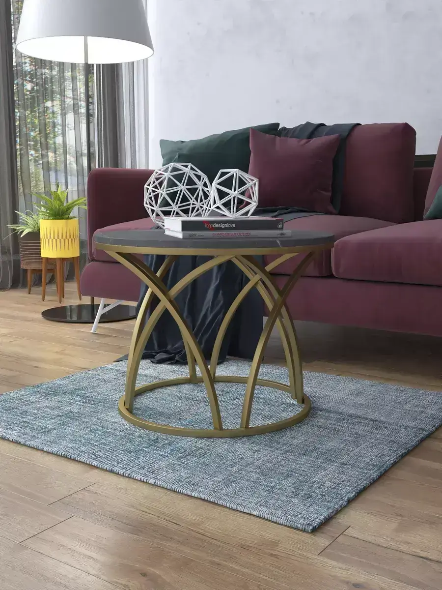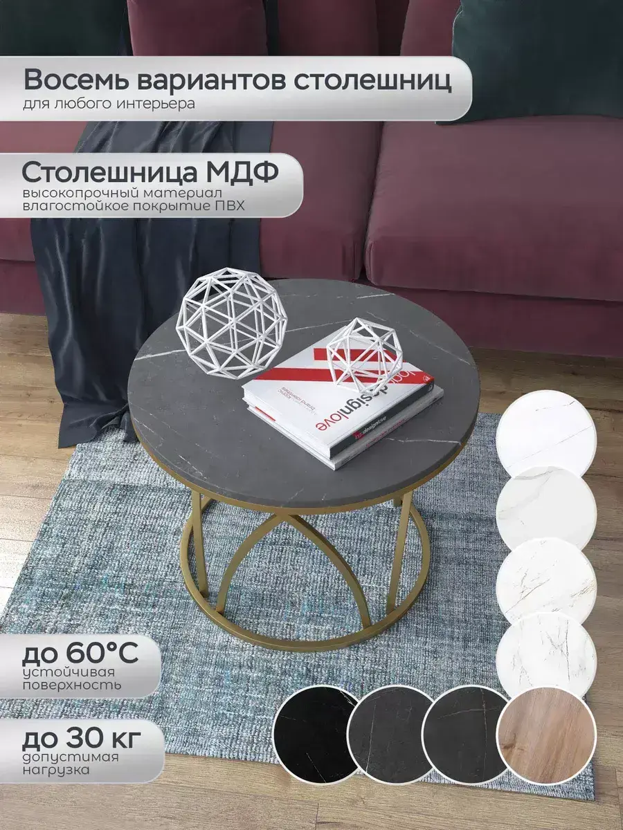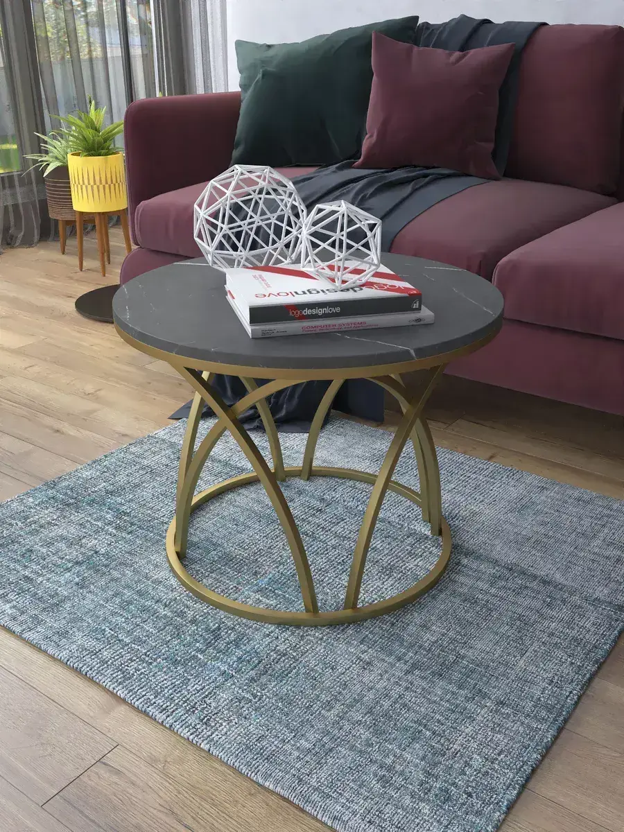 Журнальный стол "Тюльпан" — это стильное и функциональное дополнение к вашему интерьеру. Его уникальный дизайн и высокое качество сразу привлекают внимание. Столешница влагостойкая, а основание покрыто прочной полимерно-порошковой краской. Благодаря этому он не только привлекательно выглядит, но и очень практичен. Конструкция столика надёжна, он выдерживает нагрузку на столешницу до 30 кг. Это позволяет разместить на нём различные предметы декора или напитки. Цвет основания: золото, столешницы: мрамор черный матовый. Основание выполнено из квадратной профильной трубы 15х15 толщиной 1.2мм Этот журнальный столик удобен в использовании. Он не царапает пол и не шатается, обеспечивая дополнительный комфорт при эксплуатации. Производство в России гарантирует высокое качество товара и его соответствие всем стандартам. Кроме того, столик поставляется уже собранным. Вам не придётся тратить время и силы на его сборку. Просто распакуйте его и наслаждайтесь преимуществами этого прекрасного изделия. Круглый журнальный столик со столешницей под мрамор — это не просто мебель. Это настоящее произведение искусства, которое подчеркнёт ваш вкус и станет главным акцентом в вашем доме. Покупая этот столик, вы получаете не только функциональную мебель, но и предмет декора, который добавит шарма и уюта в ваше пространство. Не упустите возможность купить этот уникальный журнальный столик и создать уютный уголок в вашем доме, который будет радовать вас каждый день.