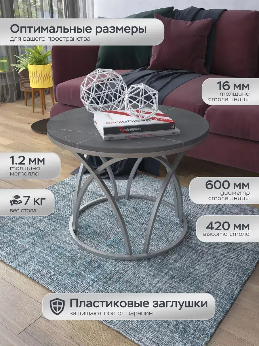 Журнальный стол "Тюльпан" — это стильное и функциональное дополнение к вашему интерьеру. Его уникальный дизайн и высокое качество сразу привлекают внимание. Столешница влагостойкая, а основание покрыто прочной полимерно-порошковой краской. Благодаря этому он не только привлекательно выглядит, но и очень практичен. Конструкция столика надёжна, он выдерживает нагрузку на столешницу до 30 кг. Это позволяет разместить на нём различные предметы декора или напитки. Цвет основания: серебро, столешницы: мрамор серебро черный матовый. Основание выполнено из квадратной профильной трубы 15х15 толщиной 1.2мм Этот журнальный столик удобен в использовании. Он не царапает пол и не шатается, обеспечивая дополнительный комфорт при эксплуатации. Производство в России гарантирует высокое качество товара и его соответствие всем стандартам. Кроме того, столик поставляется уже собранным. Вам не придётся тратить время и силы на его сборку. Просто распакуйте его и наслаждайтесь преимуществами этого прекрасного изделия. Круглый журнальный столик со столешницей под мрамор — это не просто мебель. Это настоящее произведение искусства, которое подчеркнёт ваш вкус и станет главным акцентом в вашем доме. Покупая этот столик, вы получаете не только функциональную мебель, но и предмет декора, который добавит шарма и уюта в ваше пространство. Не упустите возможность купить этот уникальный журнальный столик и создать уютный уголок в вашем доме, который будет радовать вас каждый день.
