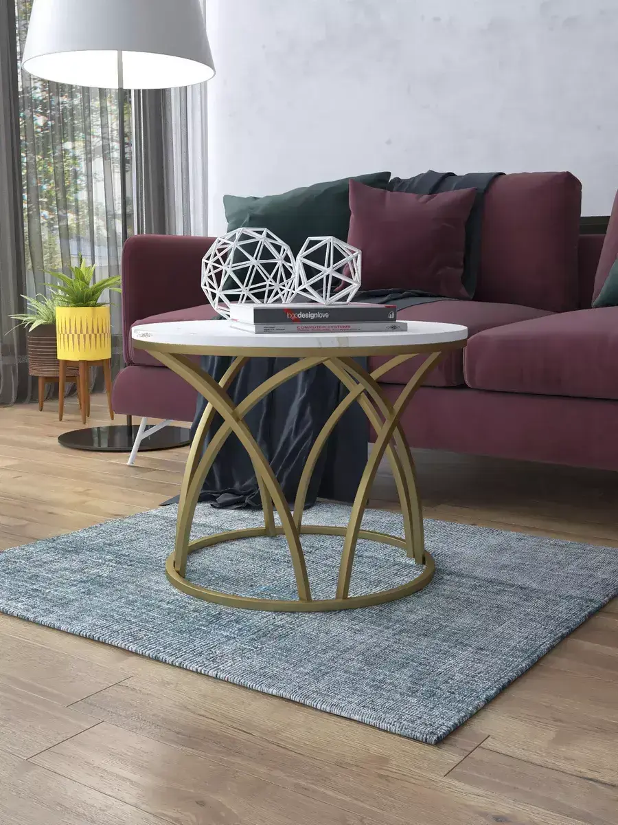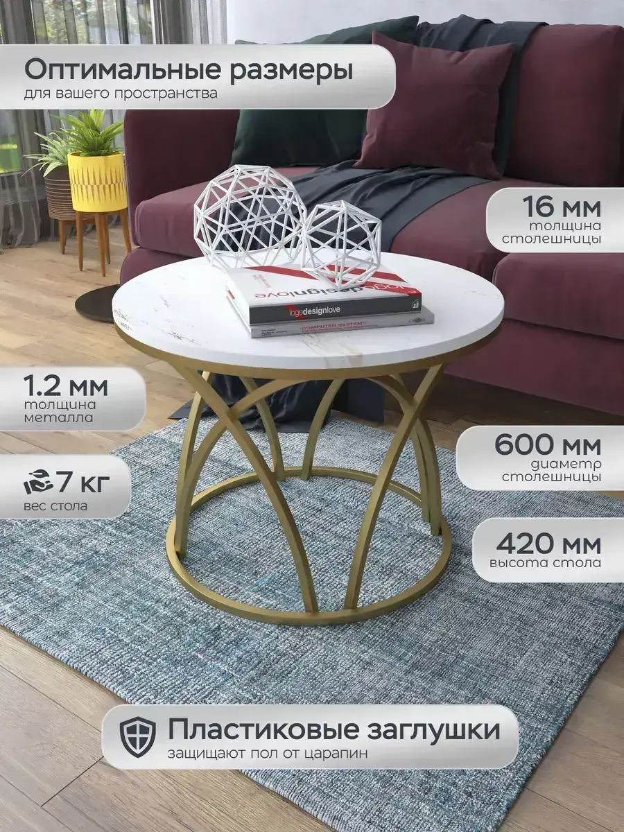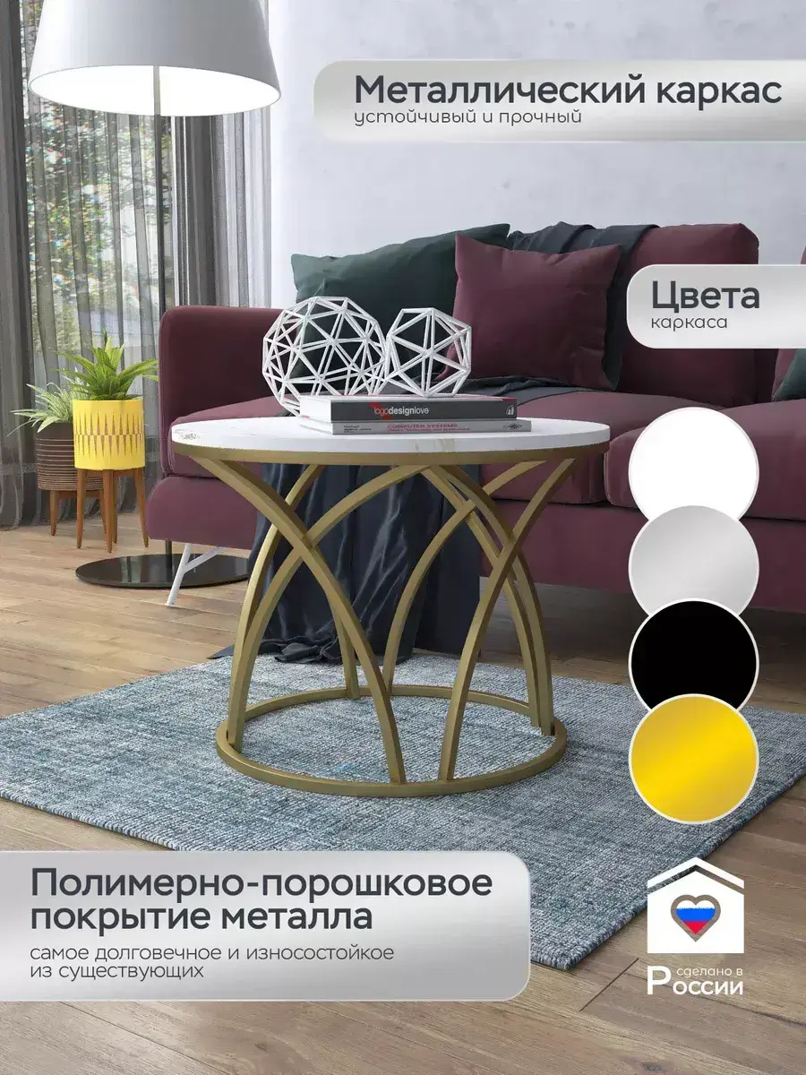 Журнальный стол "Тюльпан" — это стильное и функциональное дополнение к вашему интерьеру. Его уникальный дизайн и высокое качество сразу привлекают внимание. Столешница влагостойкая, а основание покрыто прочной полимерно-порошковой краской. Благодаря этому он не только привлекательно выглядит, но и очень практичен. Конструкция столика надёжна, он выдерживает нагрузку на столешницу до 30 кг. Это позволяет разместить на нём различные предметы декора или напитки. Цвет основания: золото, столешницы: мрамор золото белый матовый. Основание выполнено из квадратной профильной трубы 15х15 толщиной 1.2мм Этот журнальный столик удобен в использовании. Он не царапает пол и не шатается, обеспечивая дополнительный комфорт при эксплуатации. Производство в России гарантирует высокое качество товара и его соответствие всем стандартам. Кроме того, столик поставляется уже собранным. Вам не придётся тратить время и силы на его сборку. Просто распакуйте его и наслаждайтесь преимуществами этого прекрасного изделия. Круглый журнальный столик со столешницей под мрамор — это не просто мебель. Это настоящее произведение искусства, которое подчеркнёт ваш вкус и станет главным акцентом в вашем доме. Покупая этот столик, вы получаете не только функциональную мебель, но и предмет декора, который добавит шарма и уюта в ваше пространство. Не упустите возможность купить этот уникальный журнальный столик и создать уютный уголок в вашем доме, который будет радовать вас каждый день.