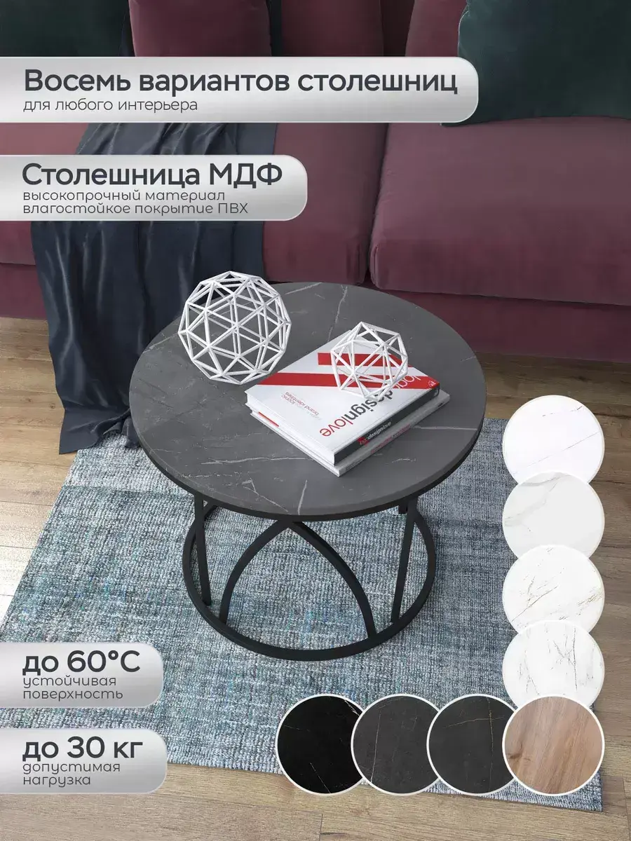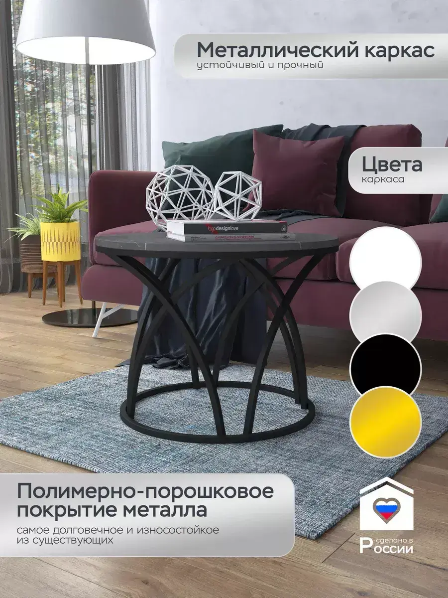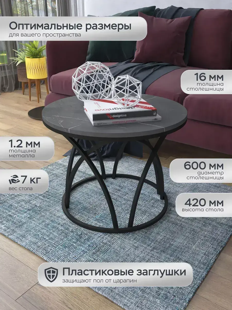 Журнальный стол "Тюльпан" — это стильное и функциональное дополнение к вашему интерьеру. Его уникальный дизайн и высокое качество сразу привлекают внимание. Столешница влагостойкая, а основание покрыто прочной полимерно-порошковой краской. Благодаря этому он не только привлекательно выглядит, но и очень практичен. Конструкция столика надёжна, он выдерживает нагрузку на столешницу до 30 кг. Это позволяет разместить на нём различные предметы декора или напитки. Цвет основания: черный, столешницы: мрамор серебро черный матовый. Основание выполнено из квадратной профильной трубы 15х15 толщиной 1.2мм Этот журнальный столик удобен в использовании. Он не царапает пол и не шатается, обеспечивая дополнительный комфорт при эксплуатации. Производство в России гарантирует высокое качество товара и его соответствие всем стандартам. Кроме того, столик поставляется уже собранным. Вам не придётся тратить время и силы на его сборку. Просто распакуйте его и наслаждайтесь преимуществами этого прекрасного изделия. Круглый журнальный столик со столешницей под мрамор — это не просто мебель. Это настоящее произведение искусства, которое подчеркнёт ваш вкус и станет главным акцентом в вашем доме. Покупая этот столик, вы получаете не только функциональную мебель, но и предмет декора, который добавит шарма и уюта в ваше пространство. Не упустите возможность купить этот уникальный журнальный столик и создать уютный уголок в вашем доме, который будет радовать вас каждый день.
