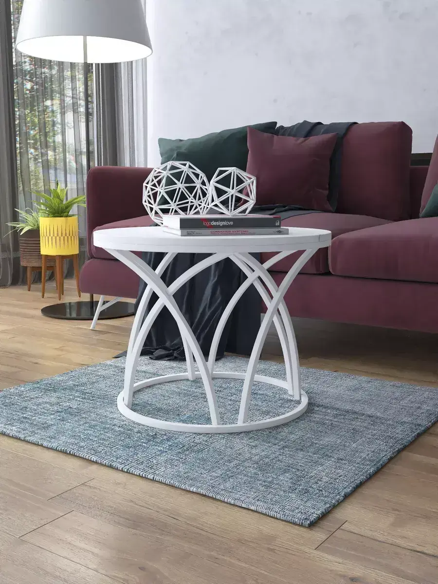 Журнальный стол "Тюльпан" — это стильное и функциональное дополнение к вашему интерьеру. Его уникальный дизайн и высокое качество сразу привлекают внимание. Столешница влагостойкая, а основание покрыто прочной полимерно-порошковой краской. Благодаря этому он не только привлекательно выглядит, но и очень практичен. Конструкция столика надёжна, он выдерживает нагрузку на столешницу до 30 кг. Это позволяет разместить на нём различные предметы декора или напитки. Цвет основания: белый, столешницы: мрамор белый матовый. Основание выполнено из квадратной профильной трубы 15х15 толщиной 1.2мм Этот журнальный столик удобен в использовании. Он не царапает пол и не шатается, обеспечивая дополнительный комфорт при эксплуатации. Производство в России гарантирует высокое качество товара и его соответствие всем стандартам. Кроме того, столик поставляется уже собранным. Вам не придётся тратить время и силы на его сборку. Просто распакуйте его и наслаждайтесь преимуществами этого прекрасного изделия. Круглый журнальный столик со столешницей под мрамор — это не просто мебель. Это настоящее произведение искусства, которое подчеркнёт ваш вкус и станет главным акцентом в вашем доме. Покупая этот столик, вы получаете не только функциональную мебель, но и предмет декора, который добавит шарма и уюта в ваше пространство. Не упустите возможность купить этот уникальный журнальный столик и создать уютный уголок в вашем доме, который будет радовать вас каждый день.